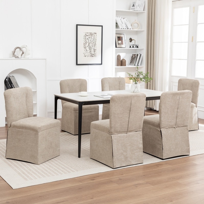 Modern 6 Piece Rattan Dining Chair with Backrest Cushions Wooden Legs for Dining Room Kitchen Living Room Bedroom