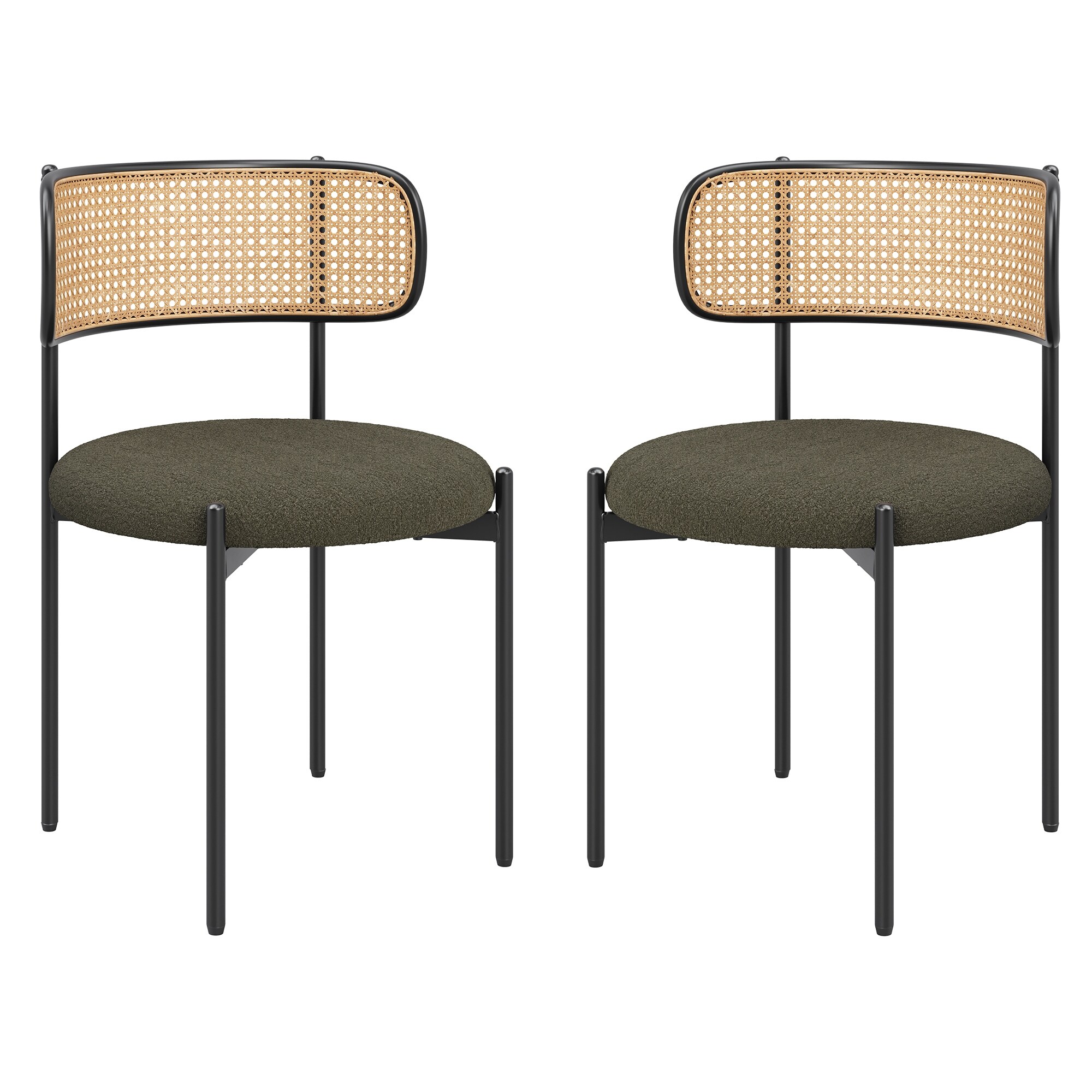 Set of 2 Modern Upholstered Dining Chairs with Rattan Back