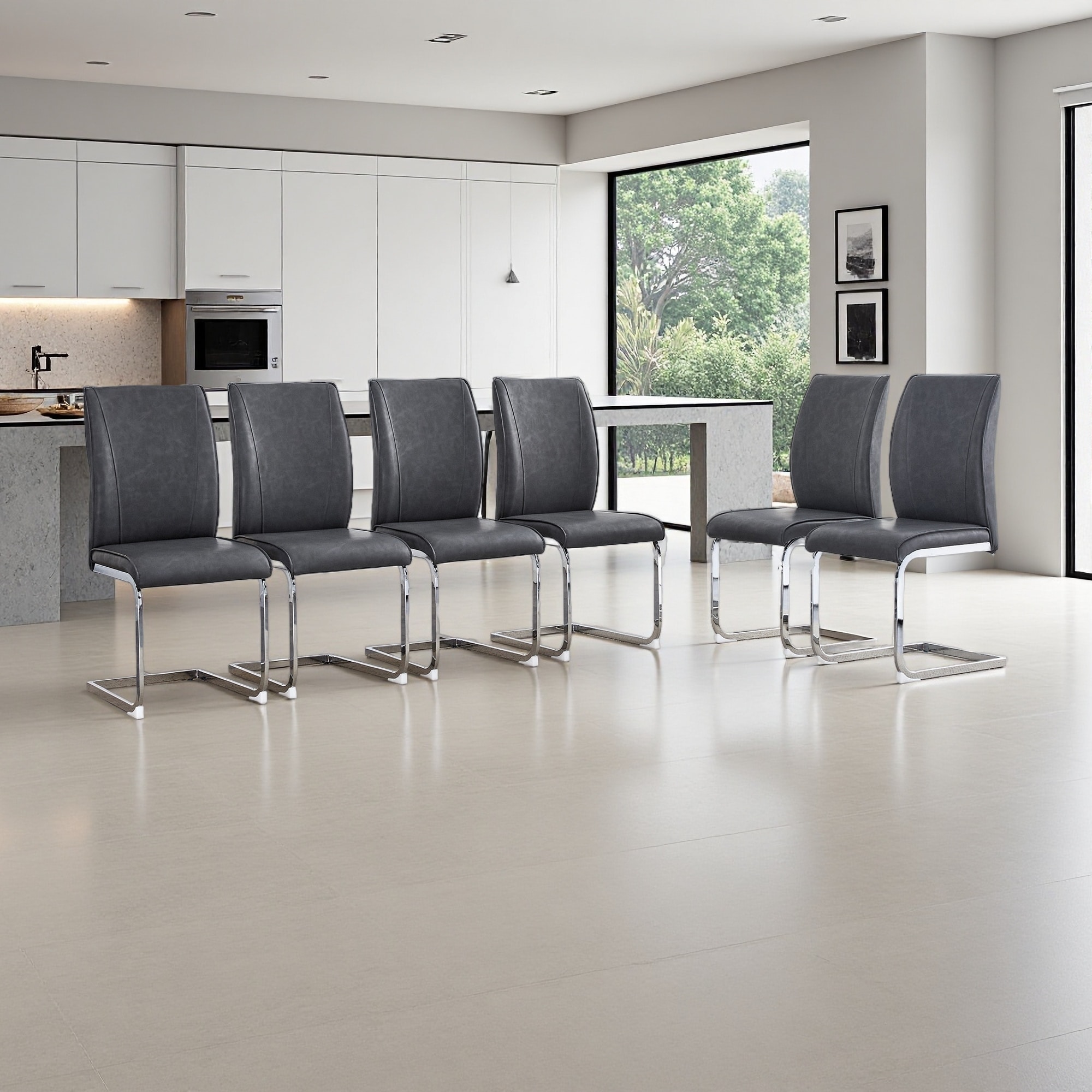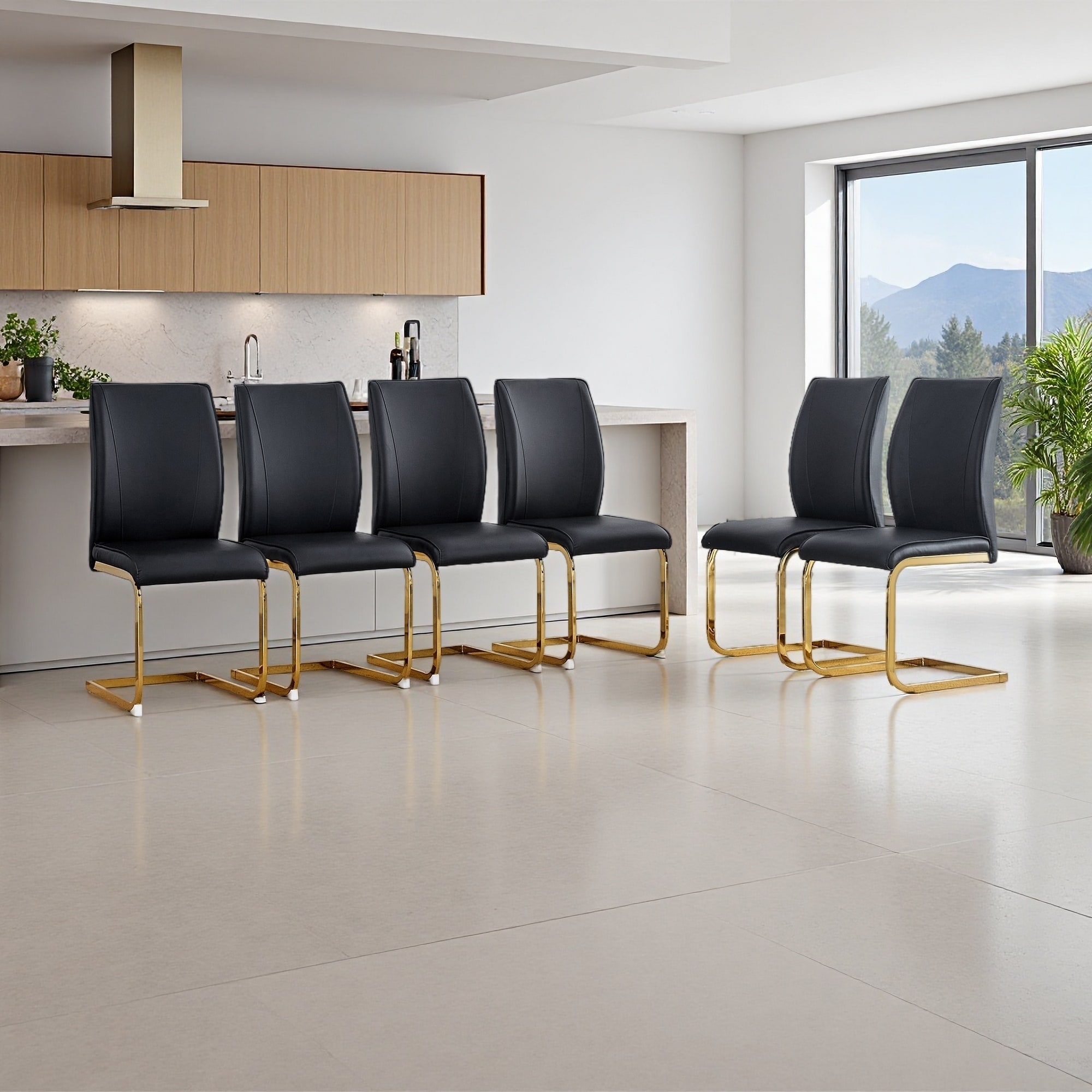 39"H Set of 6 PU Leather Dining Chairs with Arched Back & Metal Legs