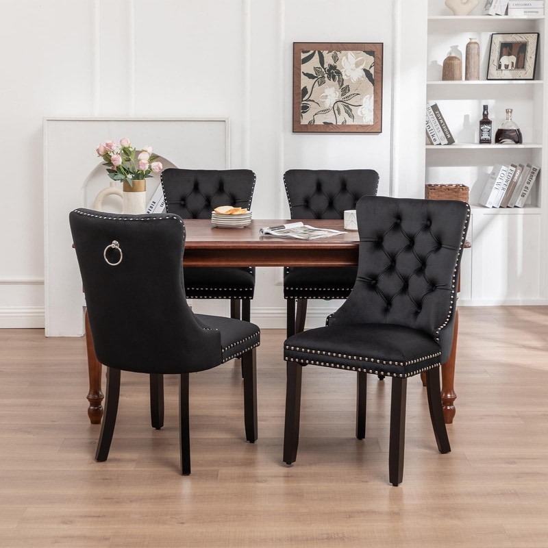 Modern Tufted Solid Wood Dining Chair set of 2 with Nailhead Trim
