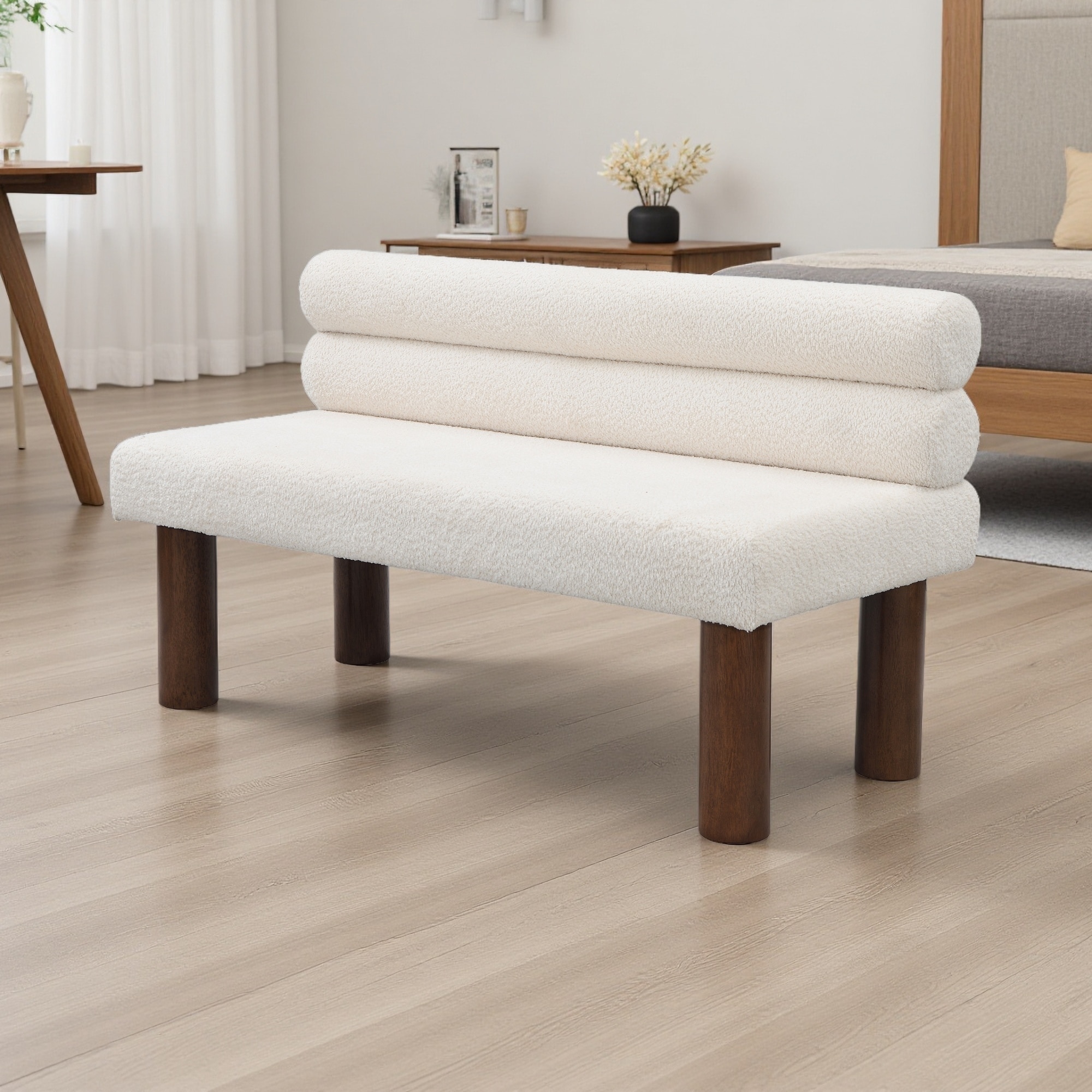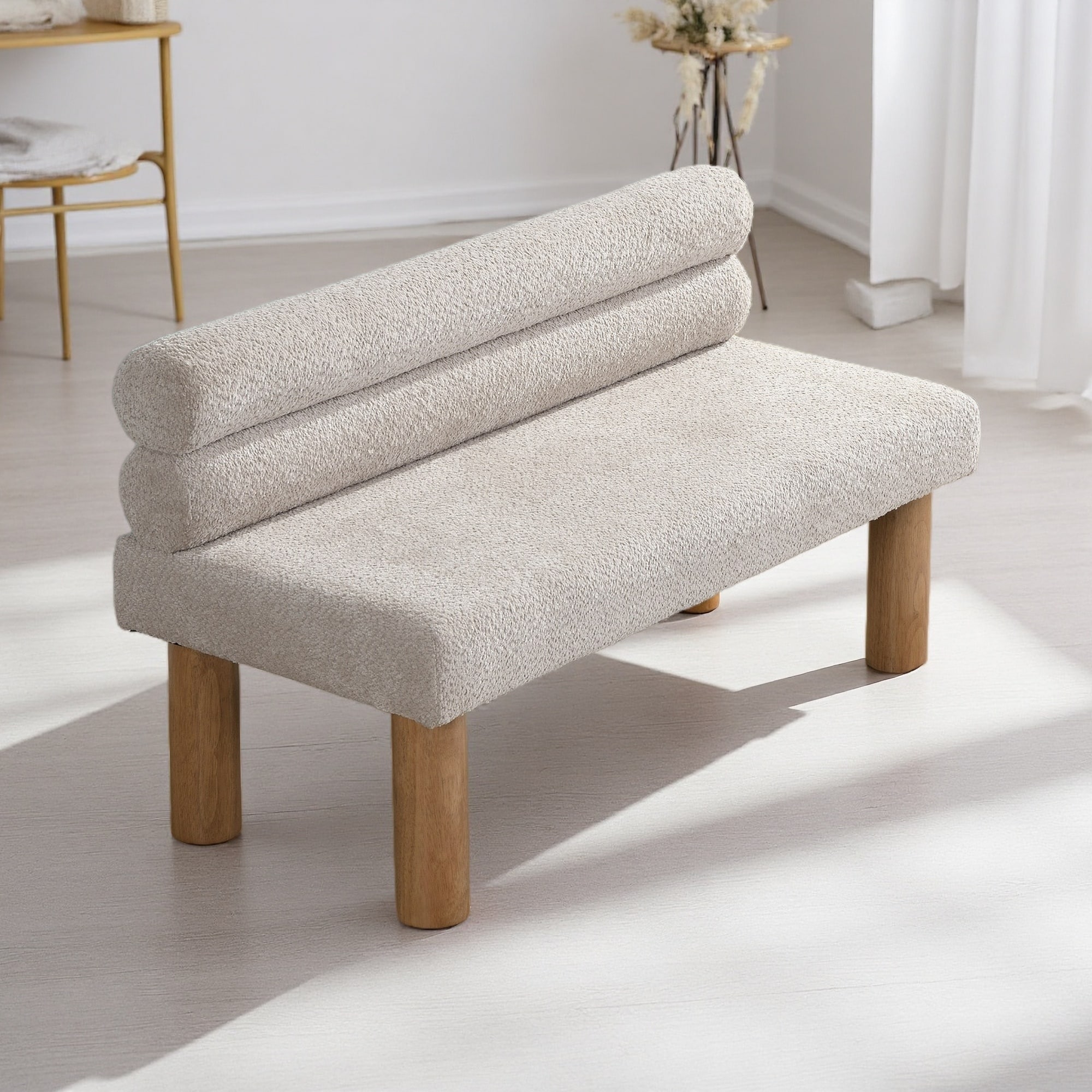 51.5"L Boucle Upholstered Dining Bench with Rubber Wood Legs, Comfortable Sponge Seat, Ideal for Bedroom, Entryway