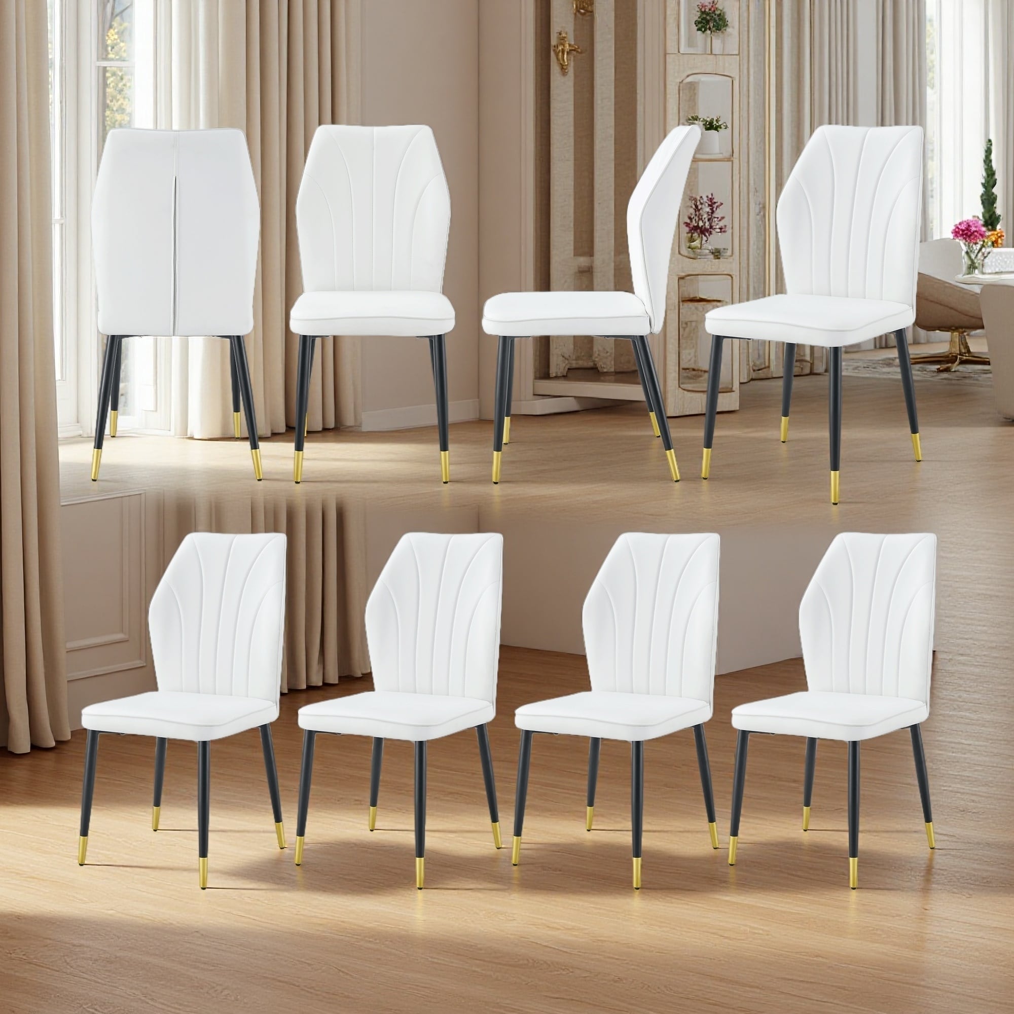 36.6"H Set of 8 PU Leather Dining Chairs with Patterned Back & Metal Legs