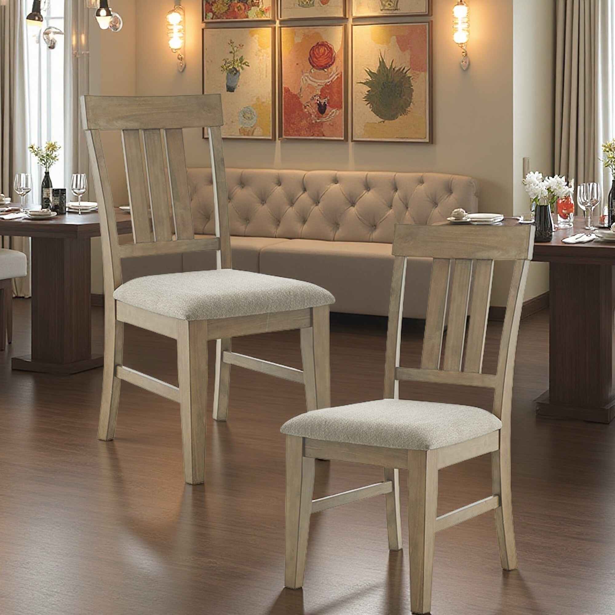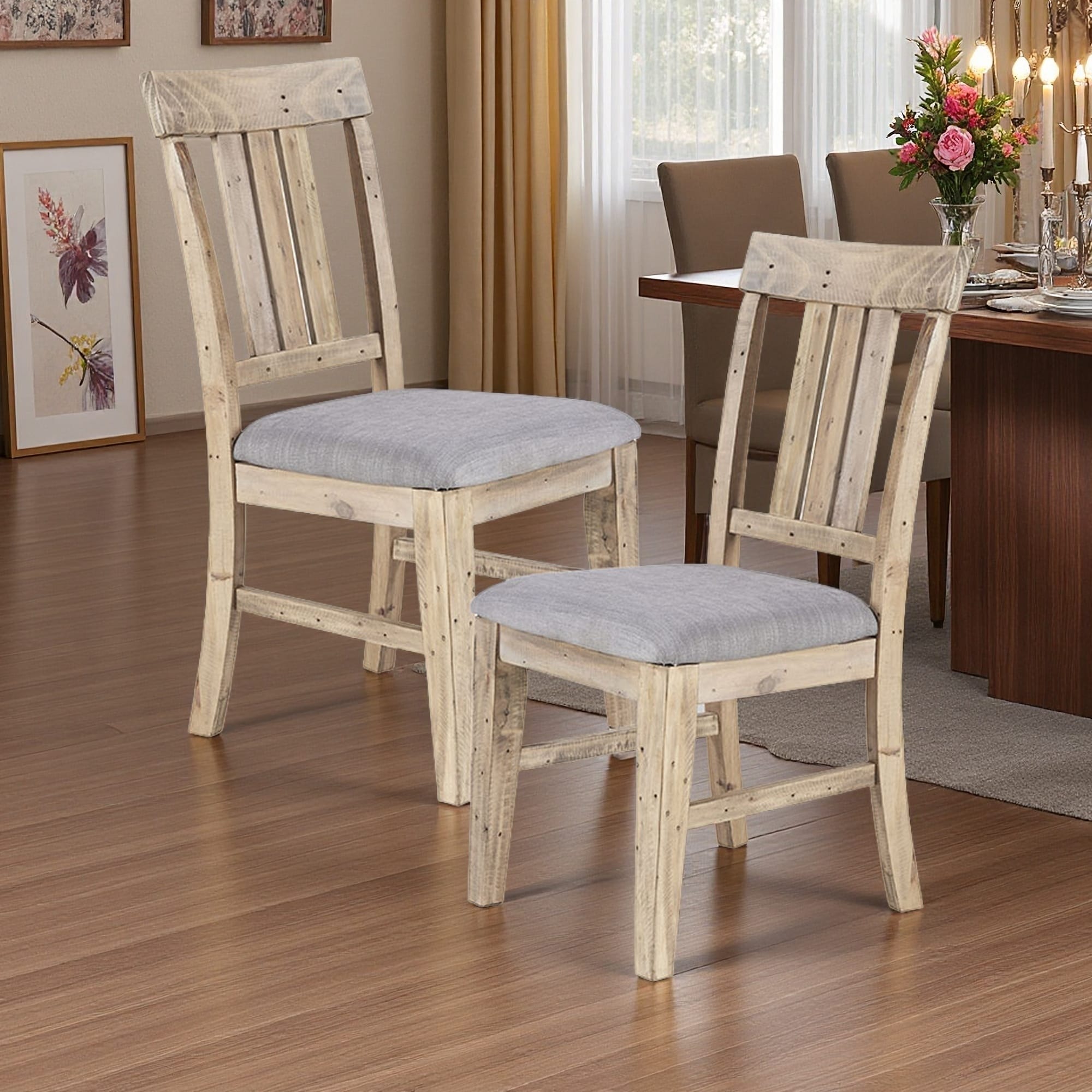 39.8"H Set of 2 Pine Wood Dining Chairs with Upholstered Seat & Weathered Finish