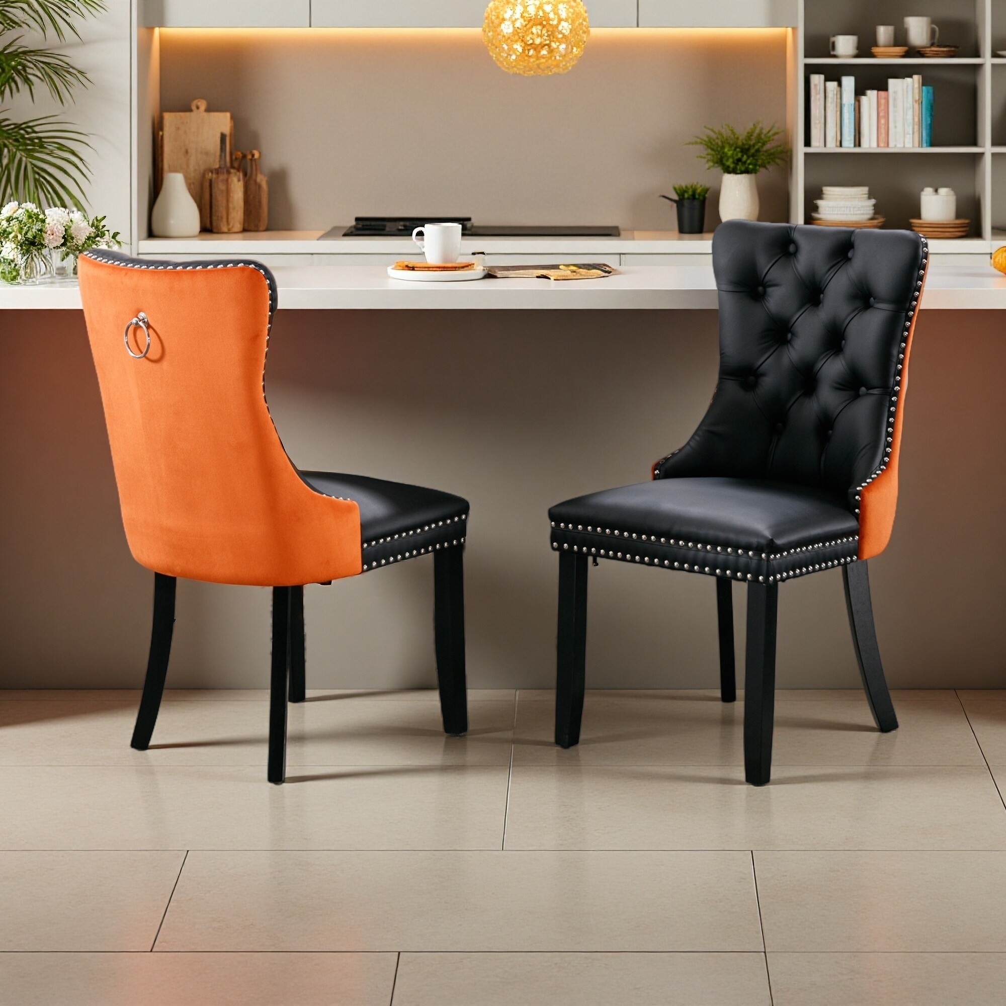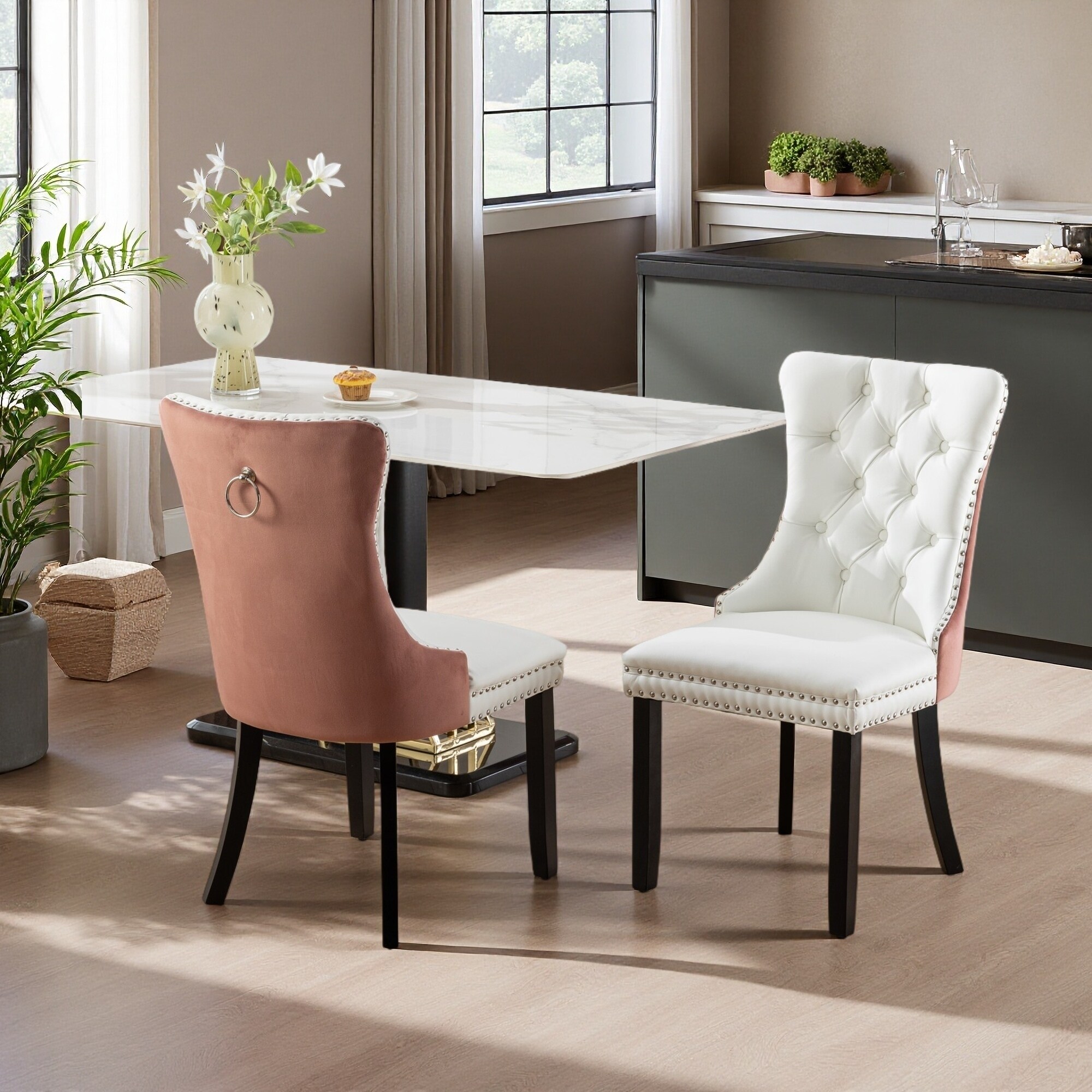 37.5"H Set of 2 PU & Velvet Tufted Dining Chairs with Nailhead Trim & Wood Frame