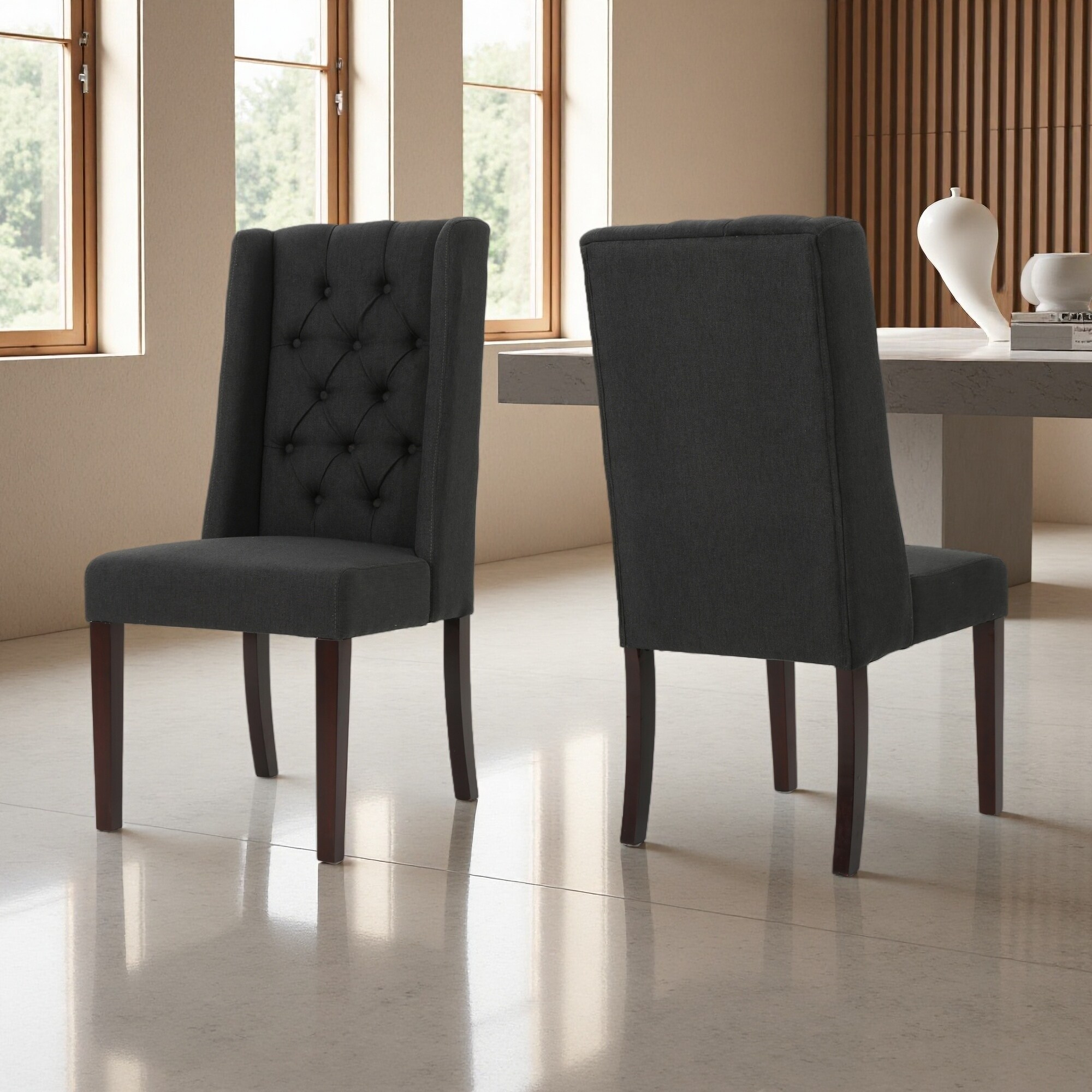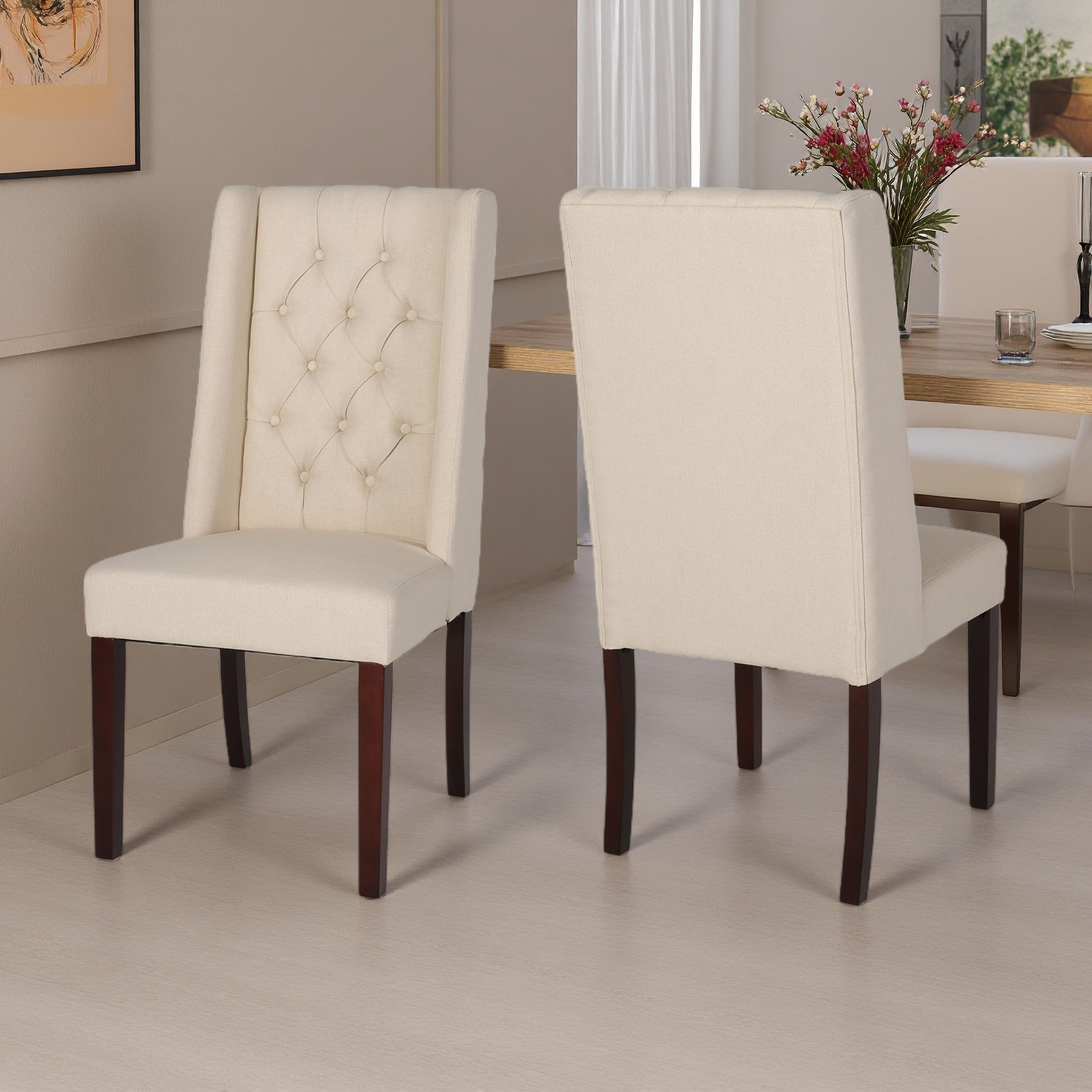 43"H Set of 2 Tufted Polyester Dining Chairs with High Back & Birch Wood Frame