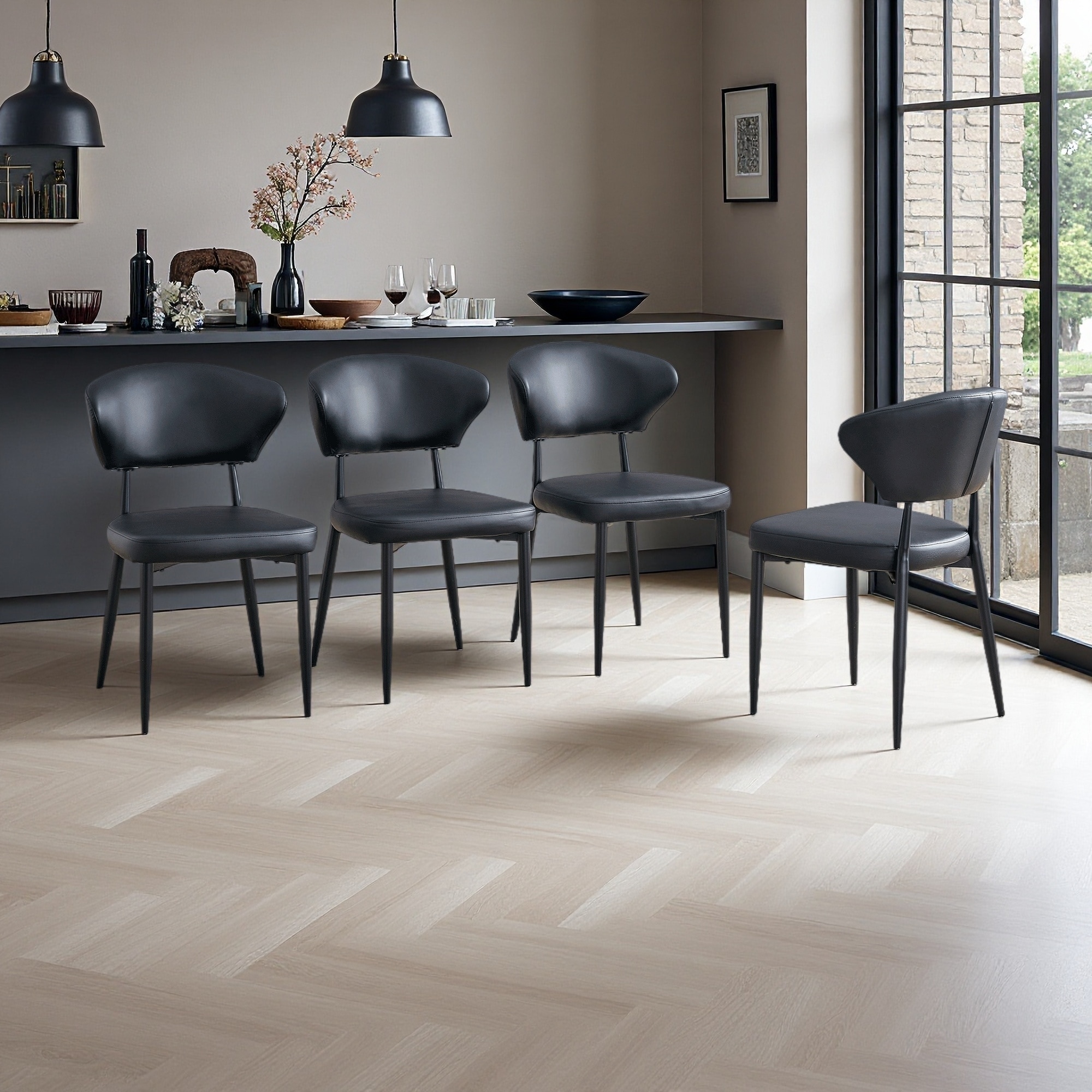 31.5"H Set of 4 PU Leather Dining Chairs with Curved Back & Cushioned Seat
