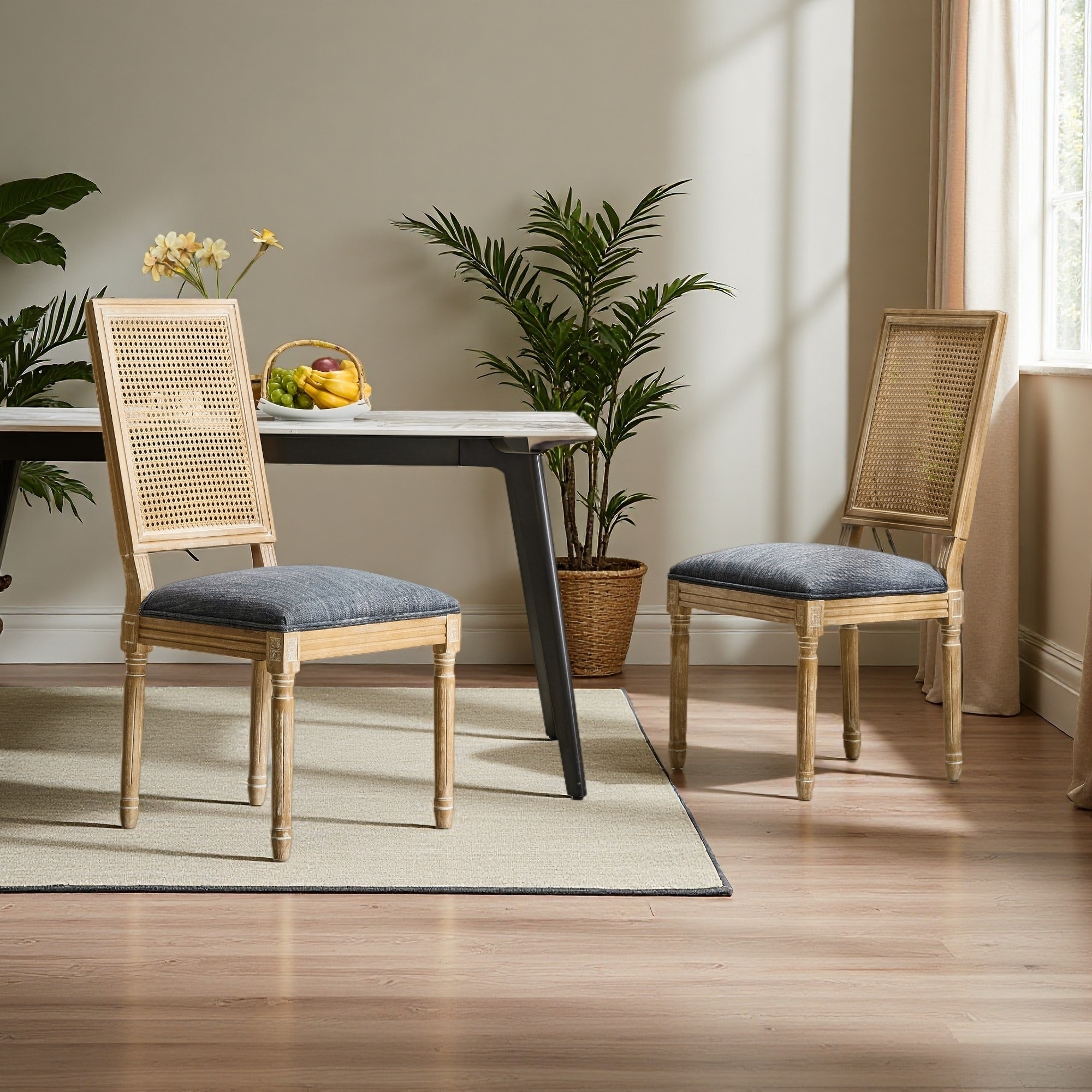 39.5"H Set of 2 French Country Upholstered Cane Back Dining Chairs with Fluted Legs