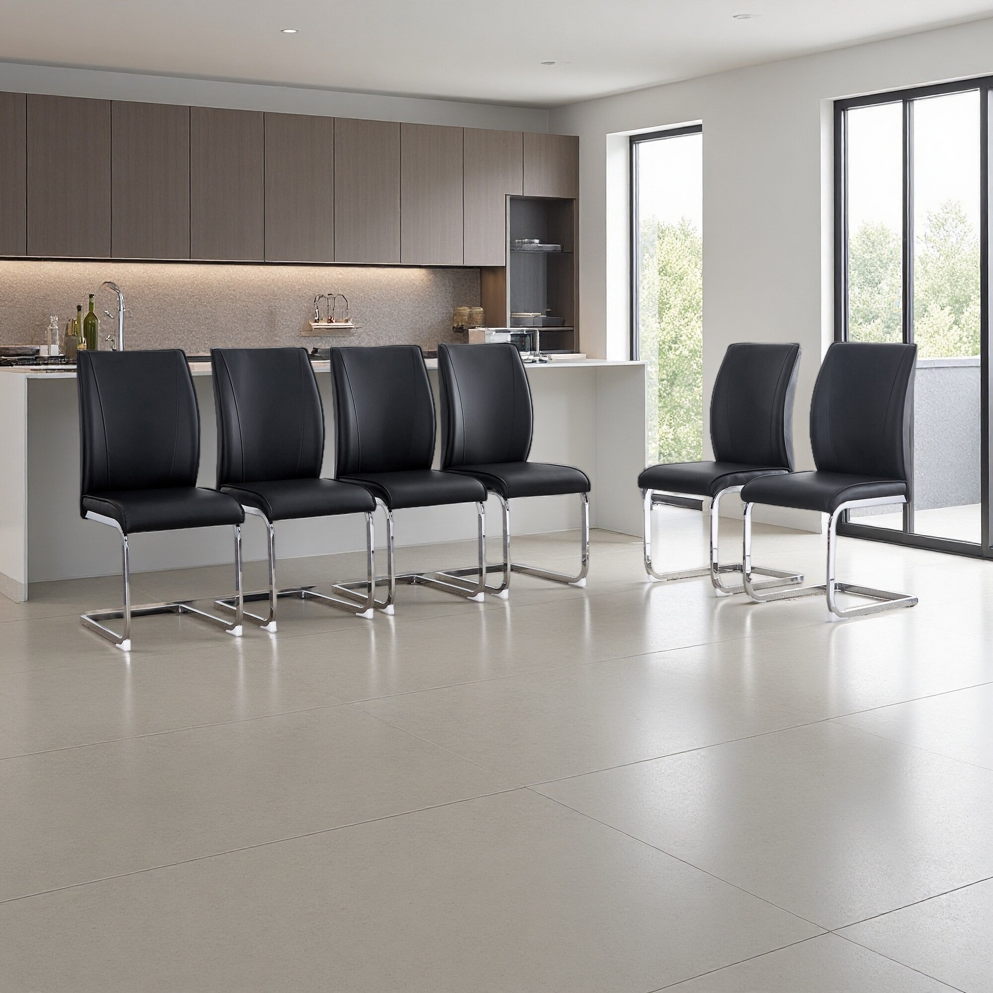 39"H Set of 6 PU Leather Dining Chairs with Arched Back & Metal Legs