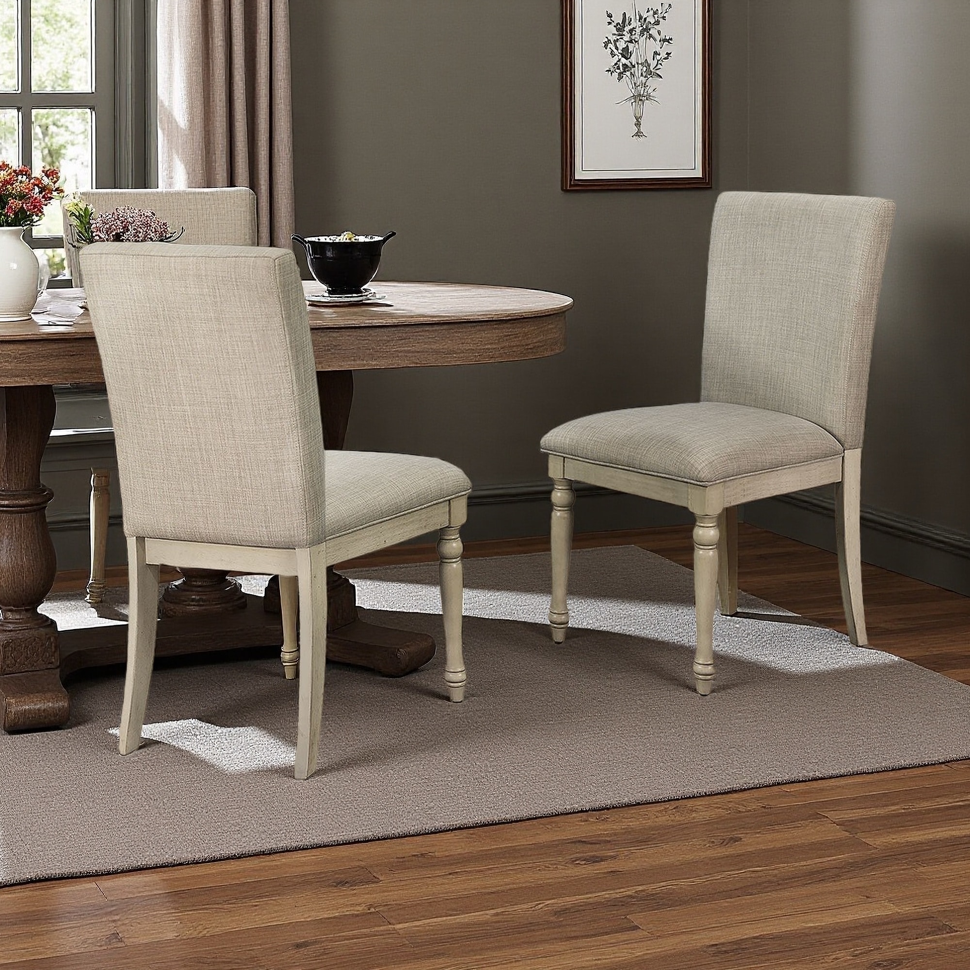 38"H Set of 2 Solid Wood Upholstered Dining Chairs with Turned Legs & Farmhouse Finish
