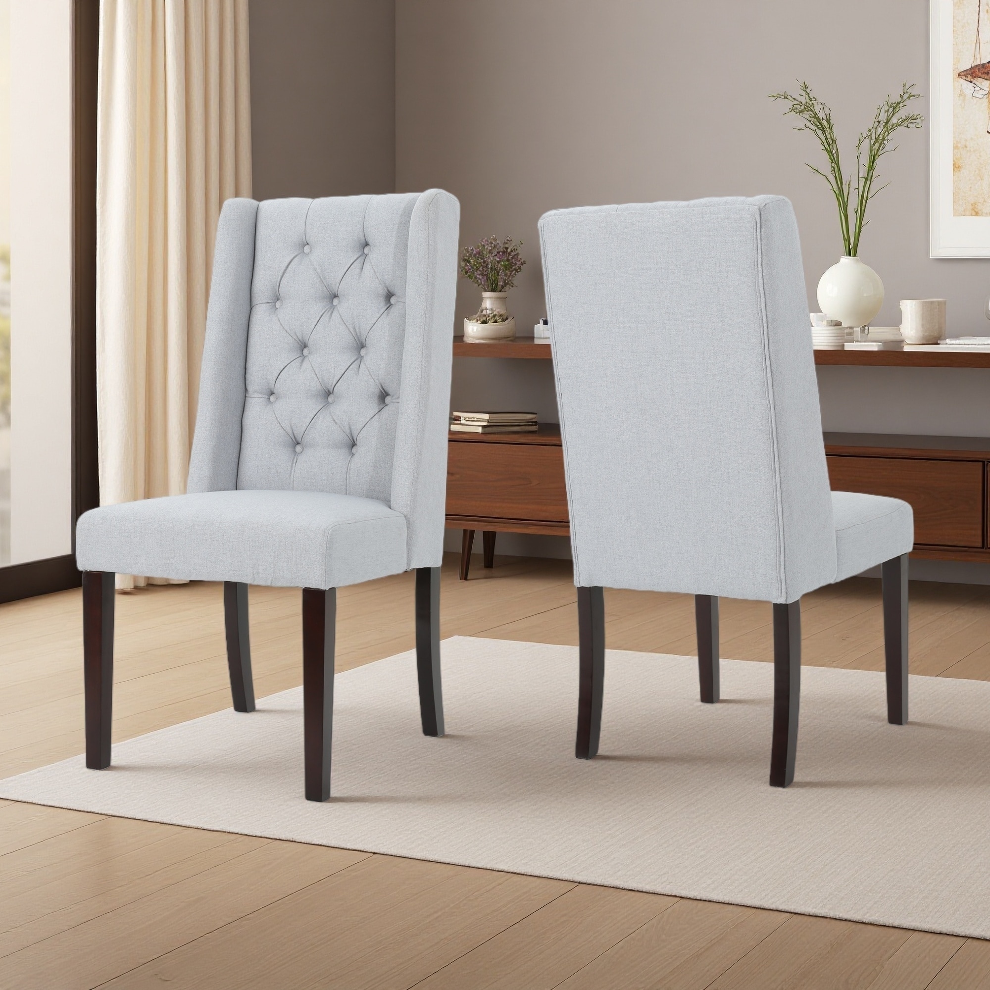 43"H Set of 2 Tufted Polyester Dining Chairs with High Back & Birch Wood Frame