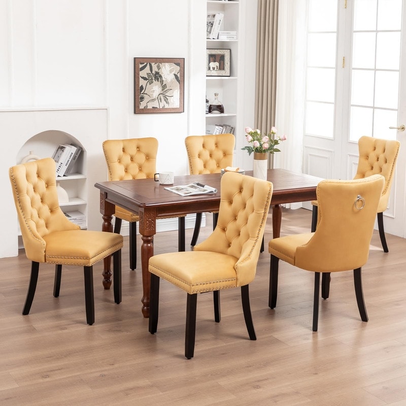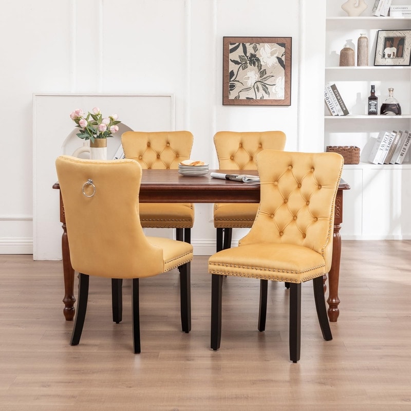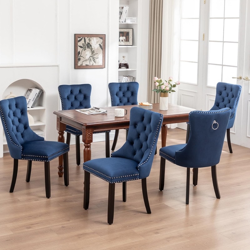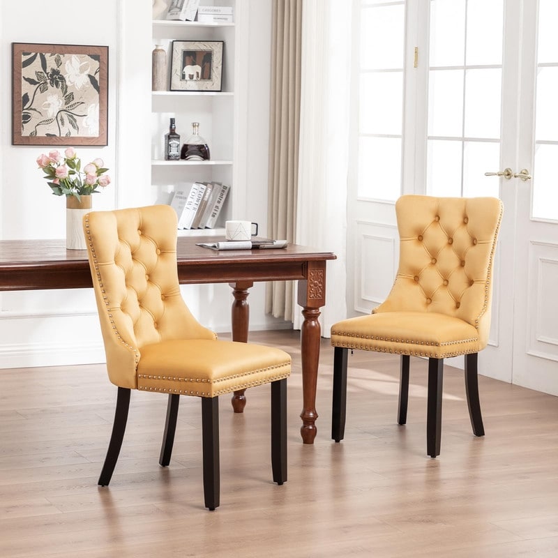 Modern Tufted Solid Wood Dining Chair set of 2 with Nailhead Trim