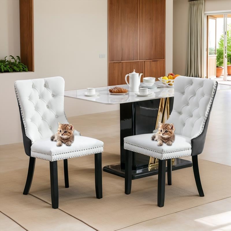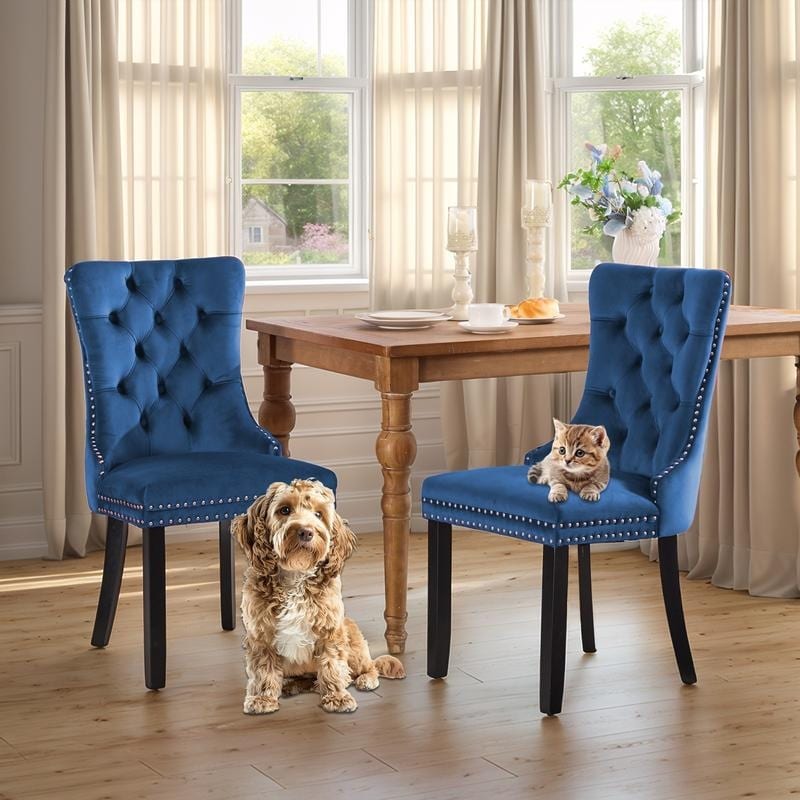 High-end Tufted Velvet Upholstered Nailhead Dining Chair Set of 2
