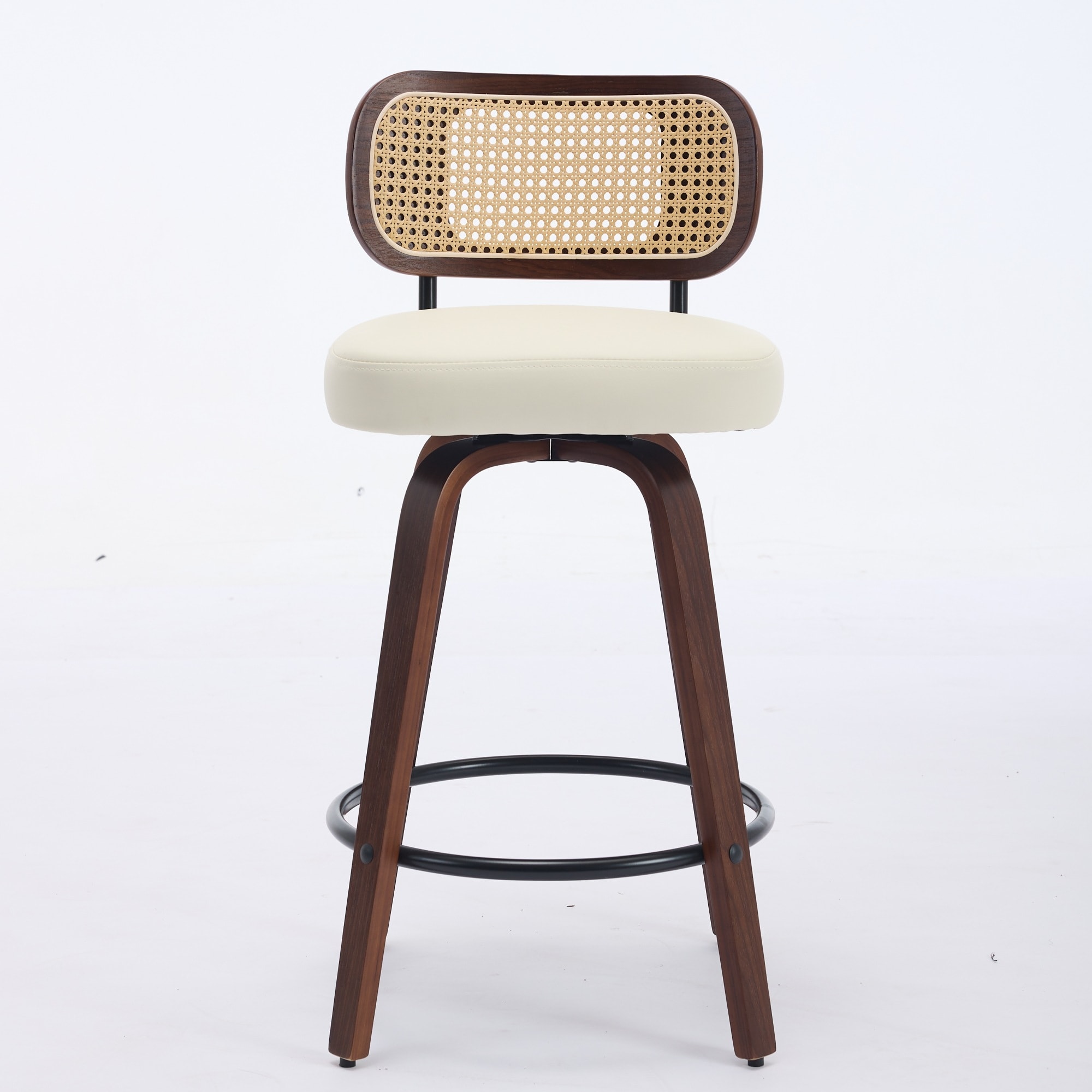 Counter Height Bar Stools - 26 inch Rattan Counter Height Stools with Cane Back, Upholstered Seat, Walnut Craftsmanship, Swivel