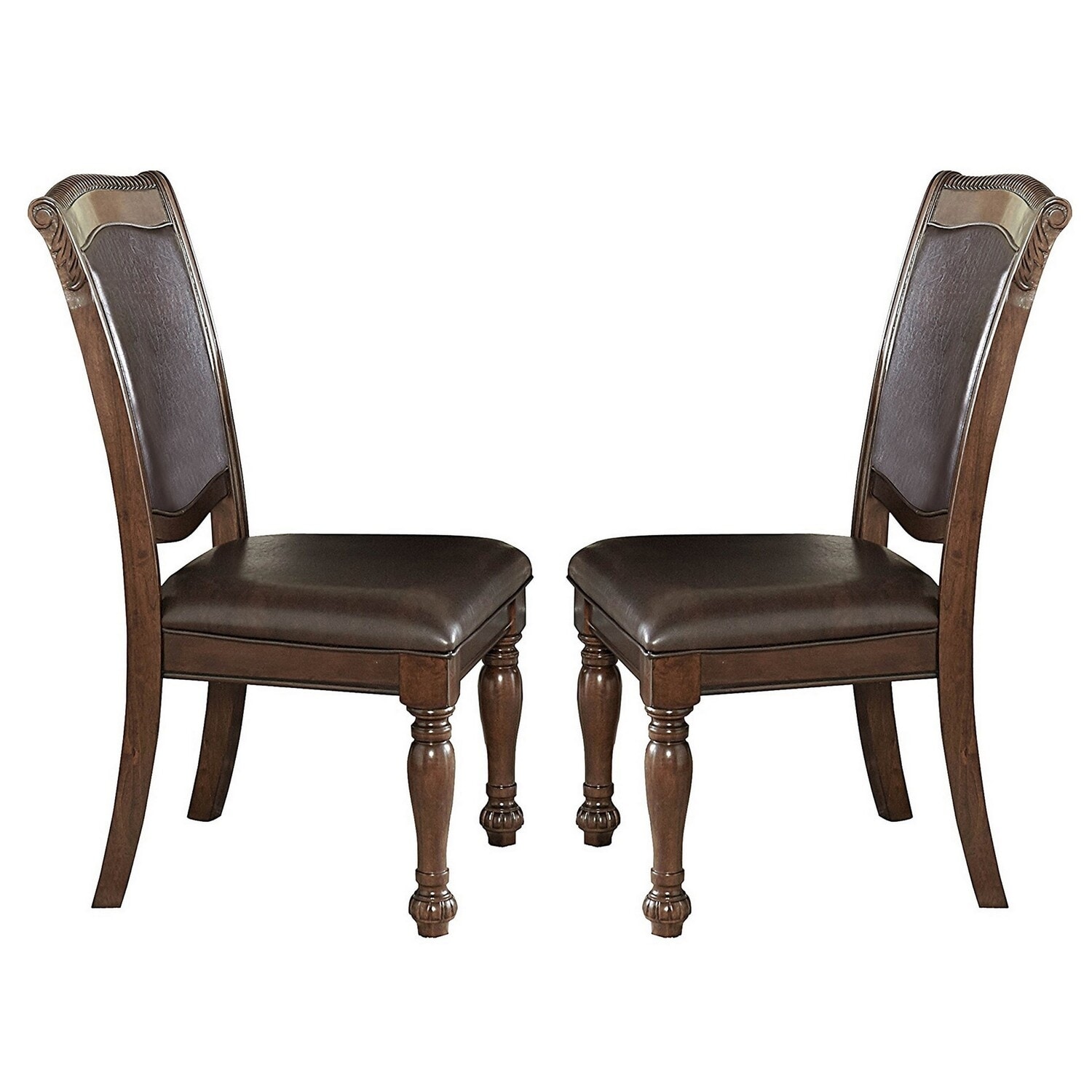 Wood and Leather Dining Chairs Set of 2, Classic Carved Side Chairs, Cherry Brown Finish - 21