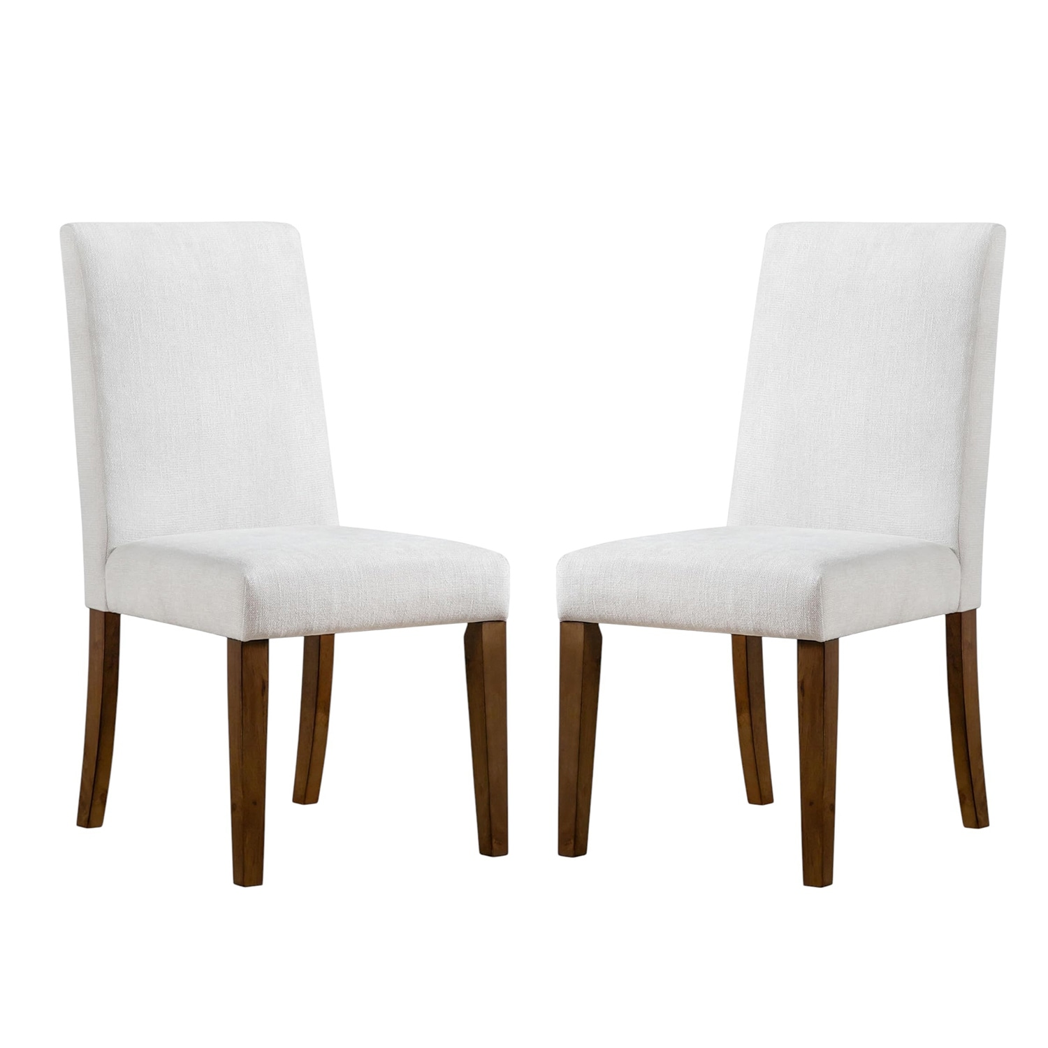 Set of 2 Upholstered Dining Chairs with Wood Legs in Brown and White