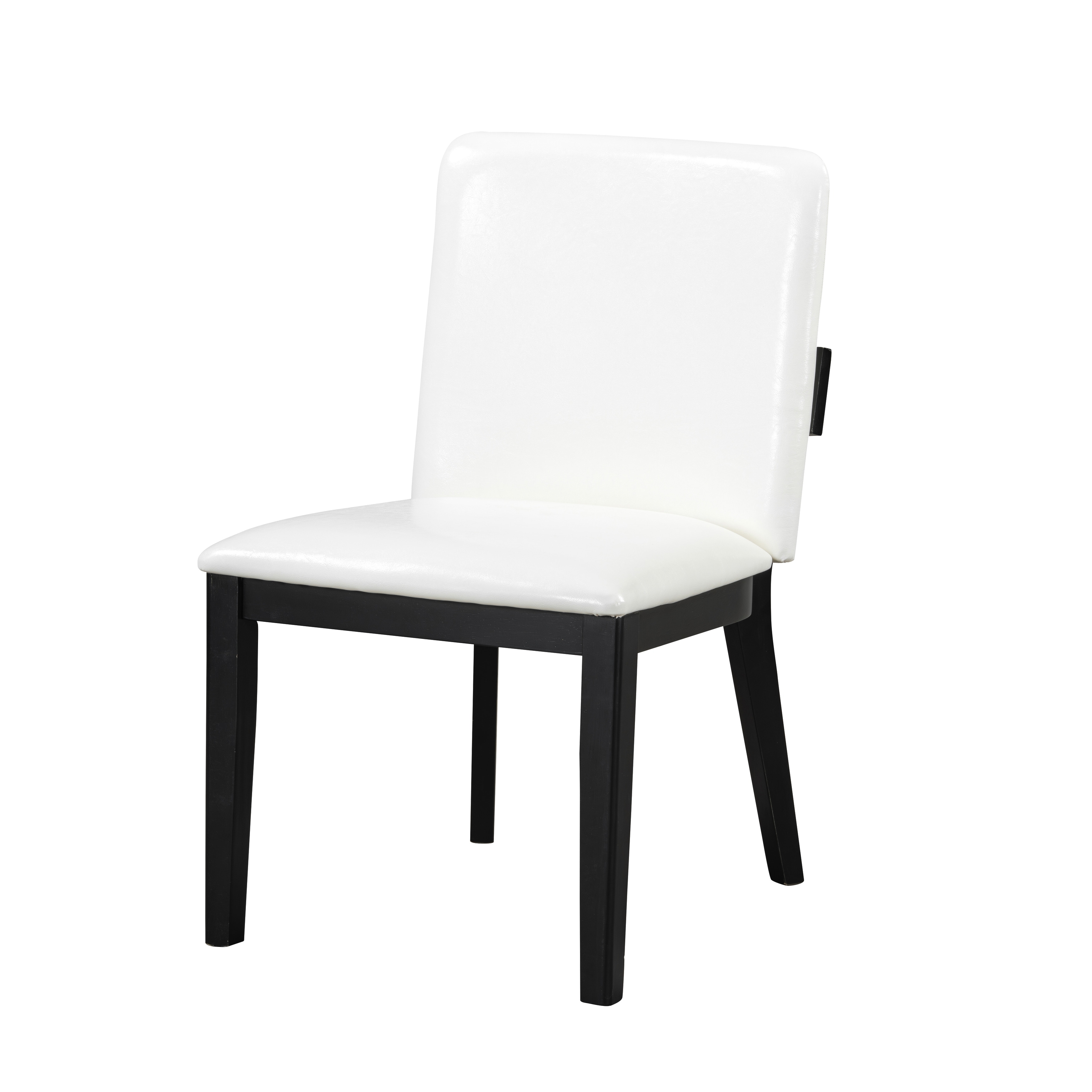 Modern Black-Finish Wood Glossy PU Leather Upholstered Dining Chairs Set of 2