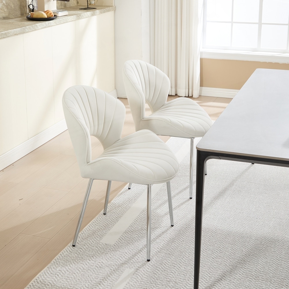 SEYNAR Modern Glam Boucle Pleated Velvet Dining Chair or Vanity Chair Set of 2 with Rear Handle