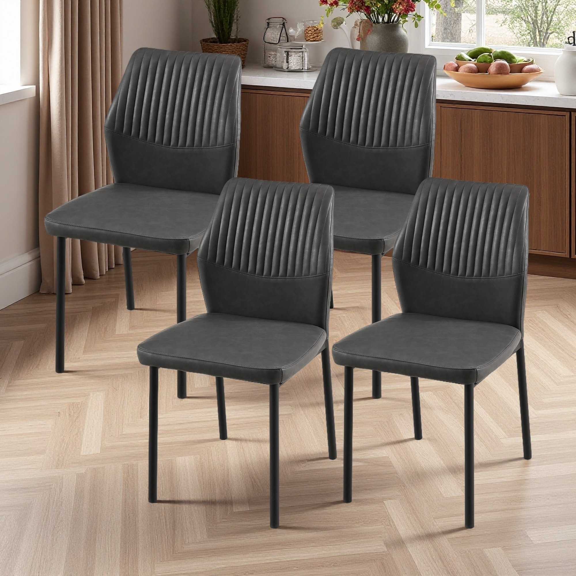 34"H Set of 4 PU Faux Leather Upholstered Armless Dining Chairs with Cushioned Seat and Metal Legs-Side Chairs for Living Room