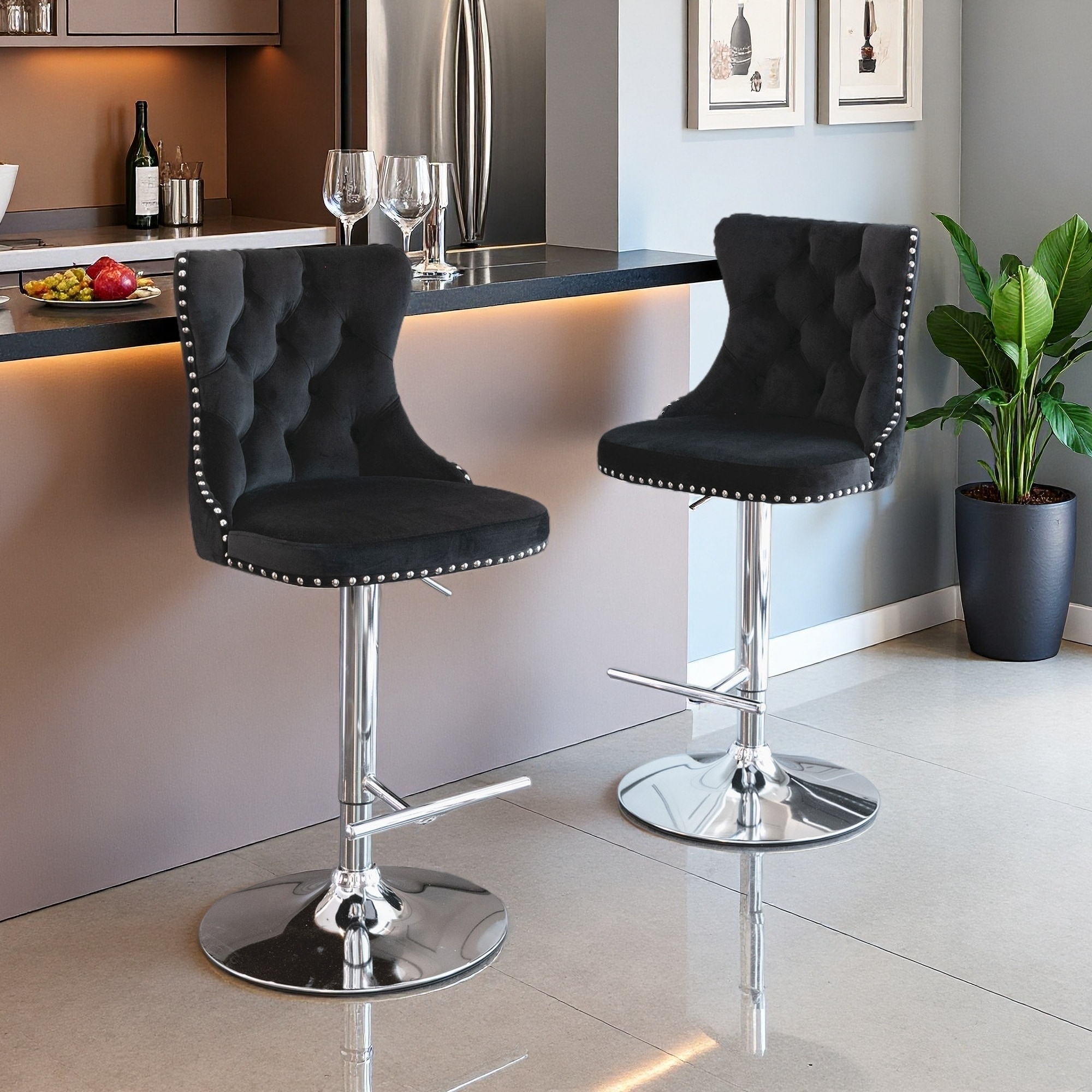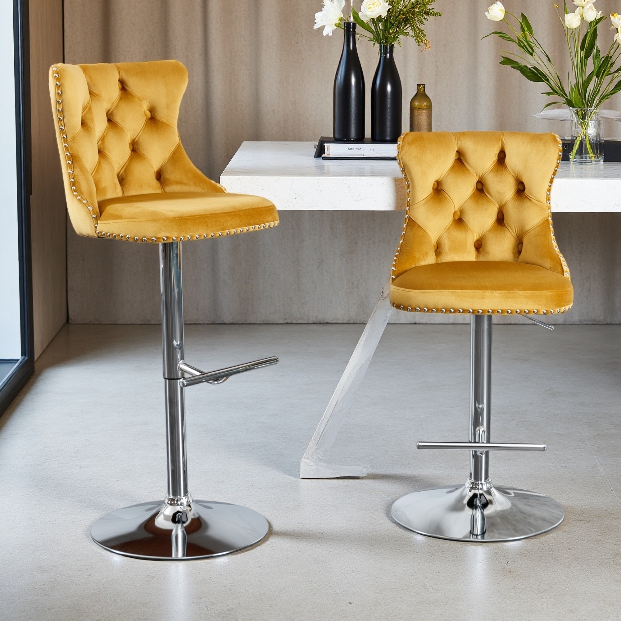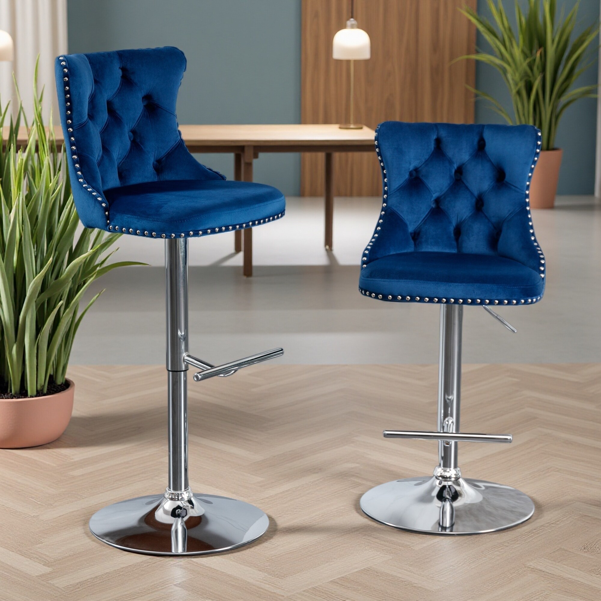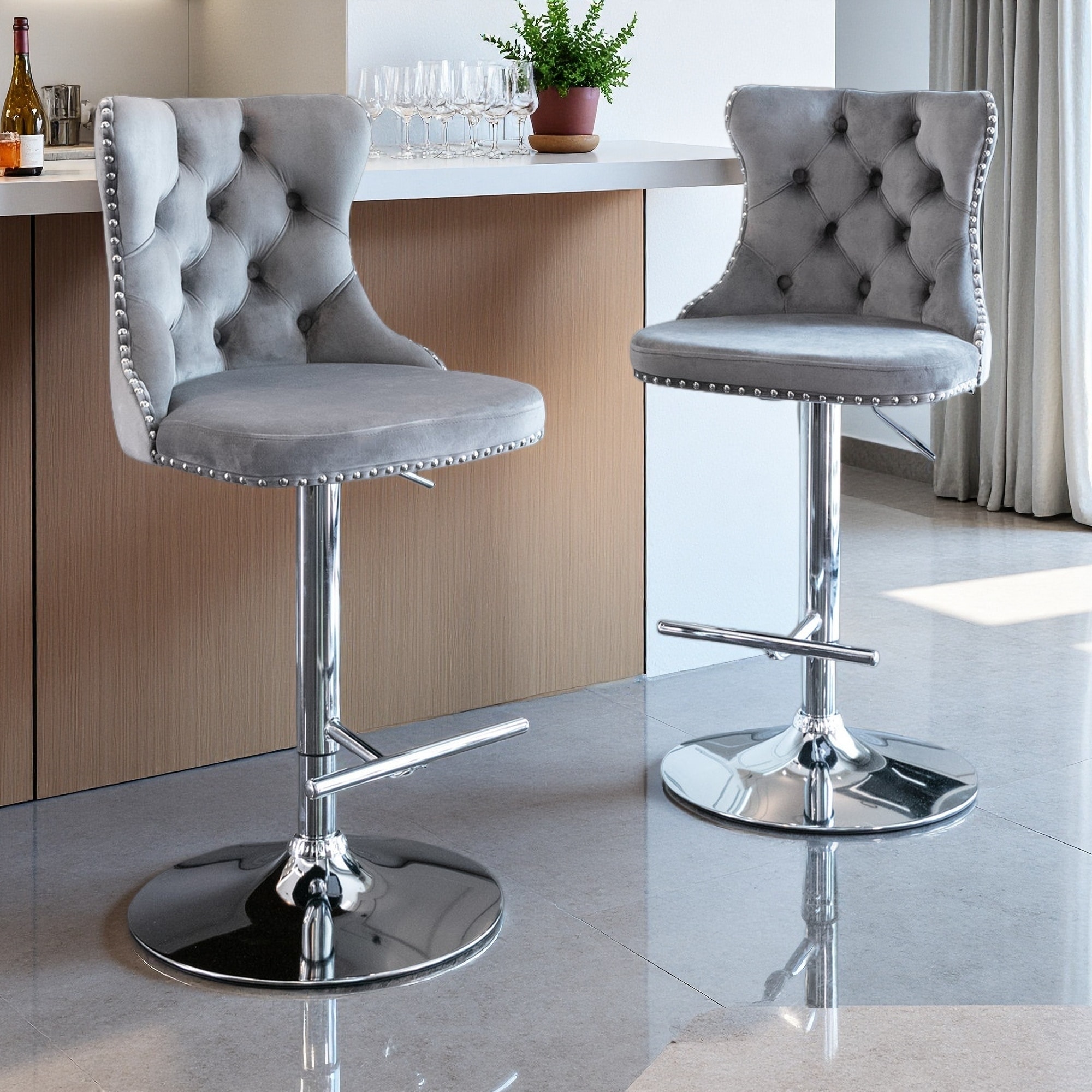 45.6"H Set of 2 Velvet Swivel Bar Stools with Tufted Back & Chrome Base