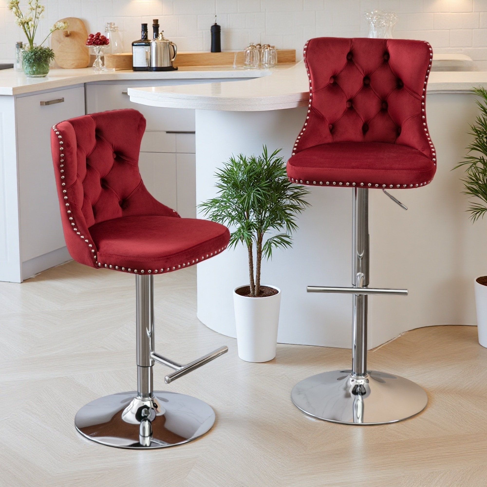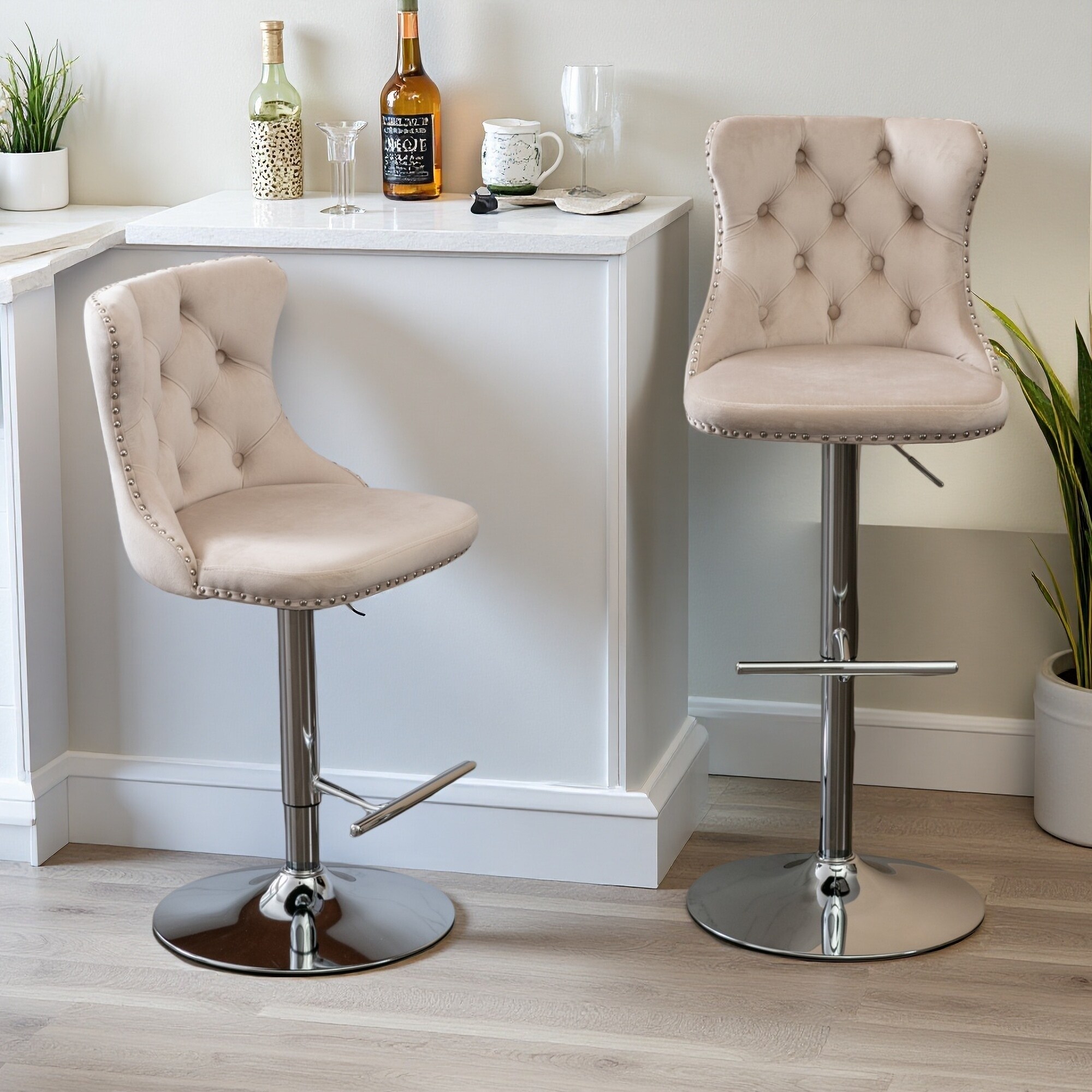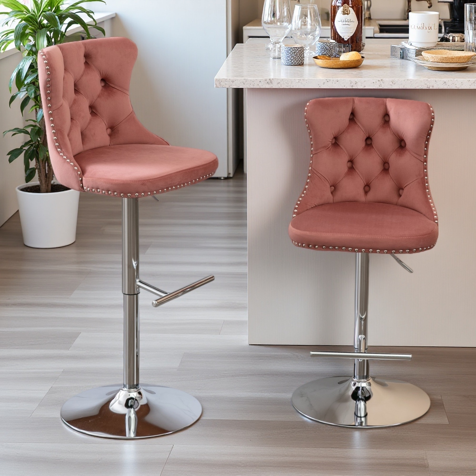 45.6"H Set of 2 Velvet Swivel Bar Stools with Tufted Back & Chrome Base
