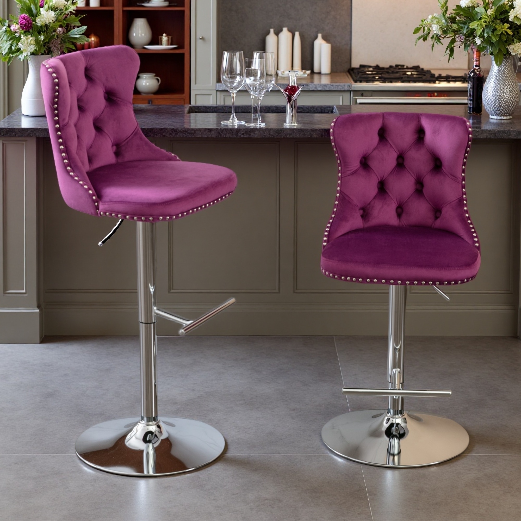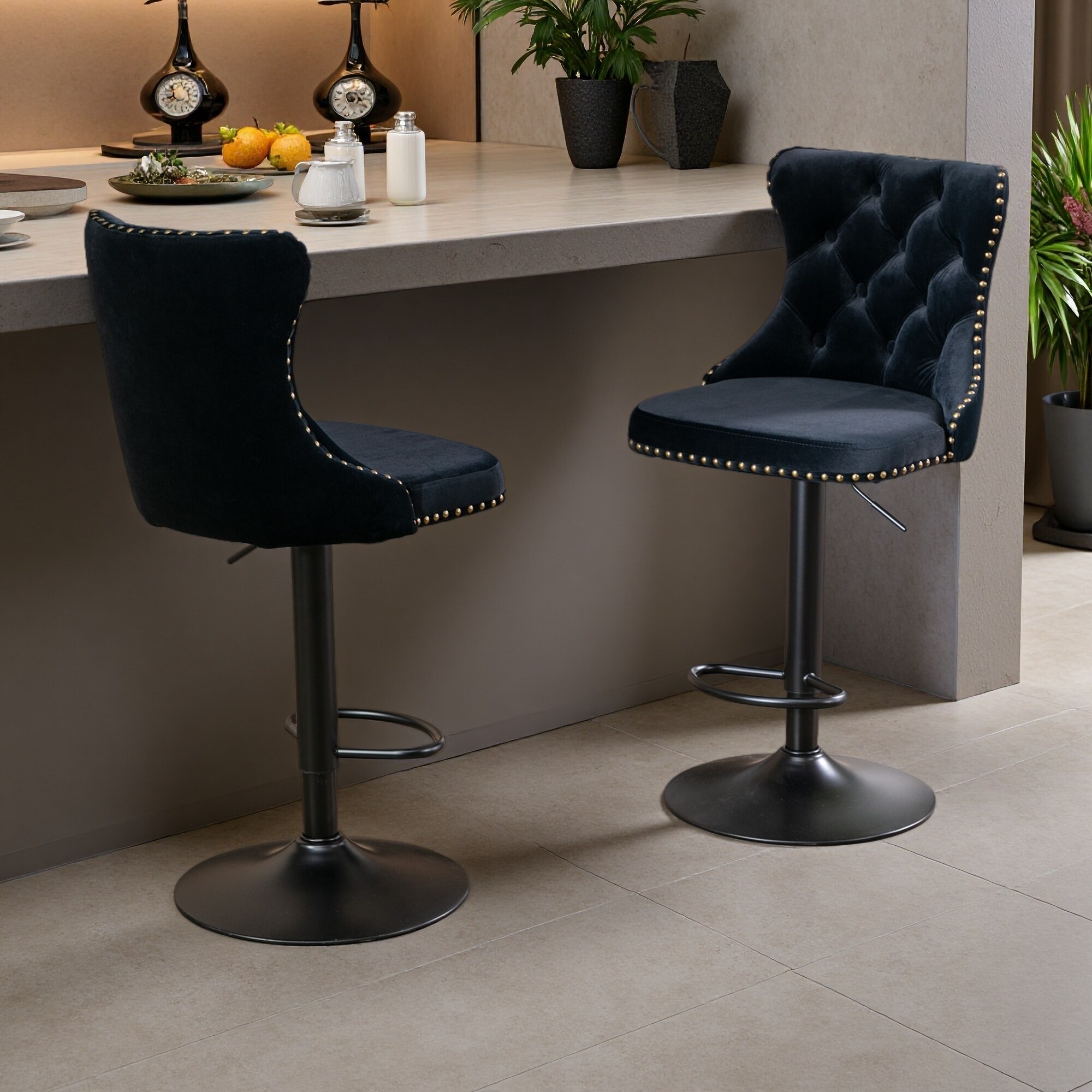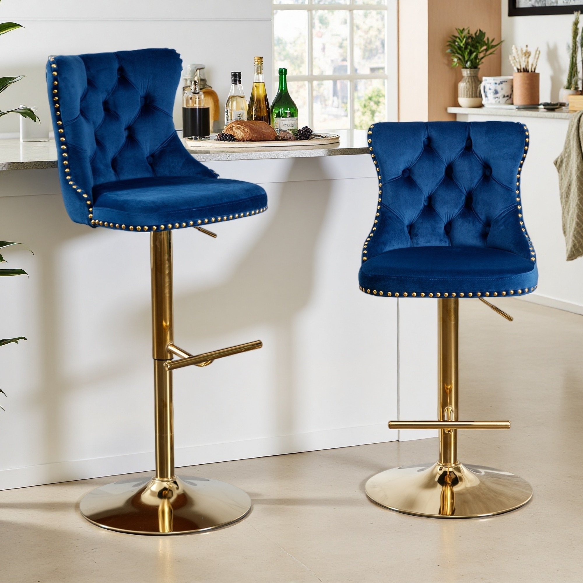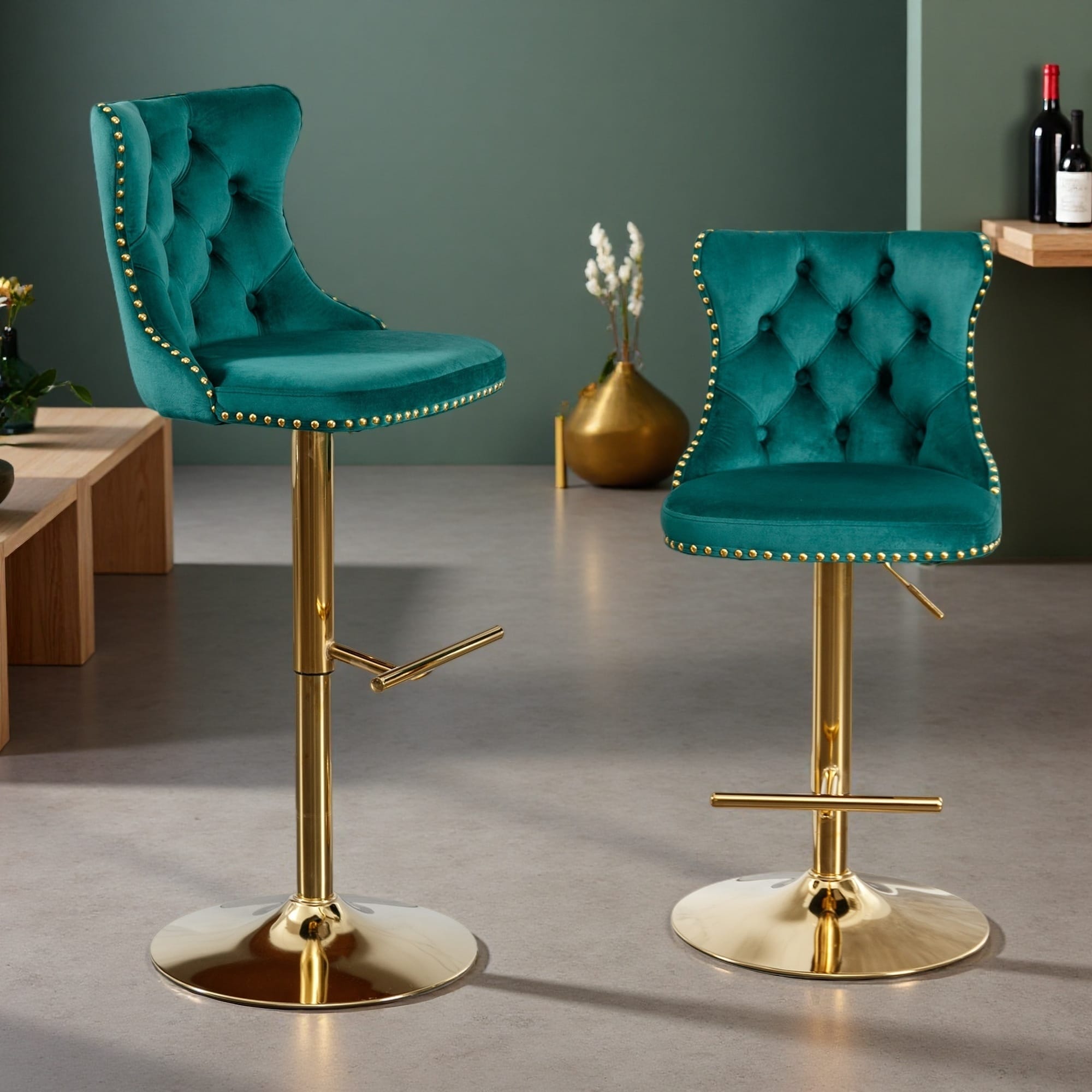 45.6"H Set of 2 Velvet Swivel Bar Stools with Tufted Back & Chrome Base