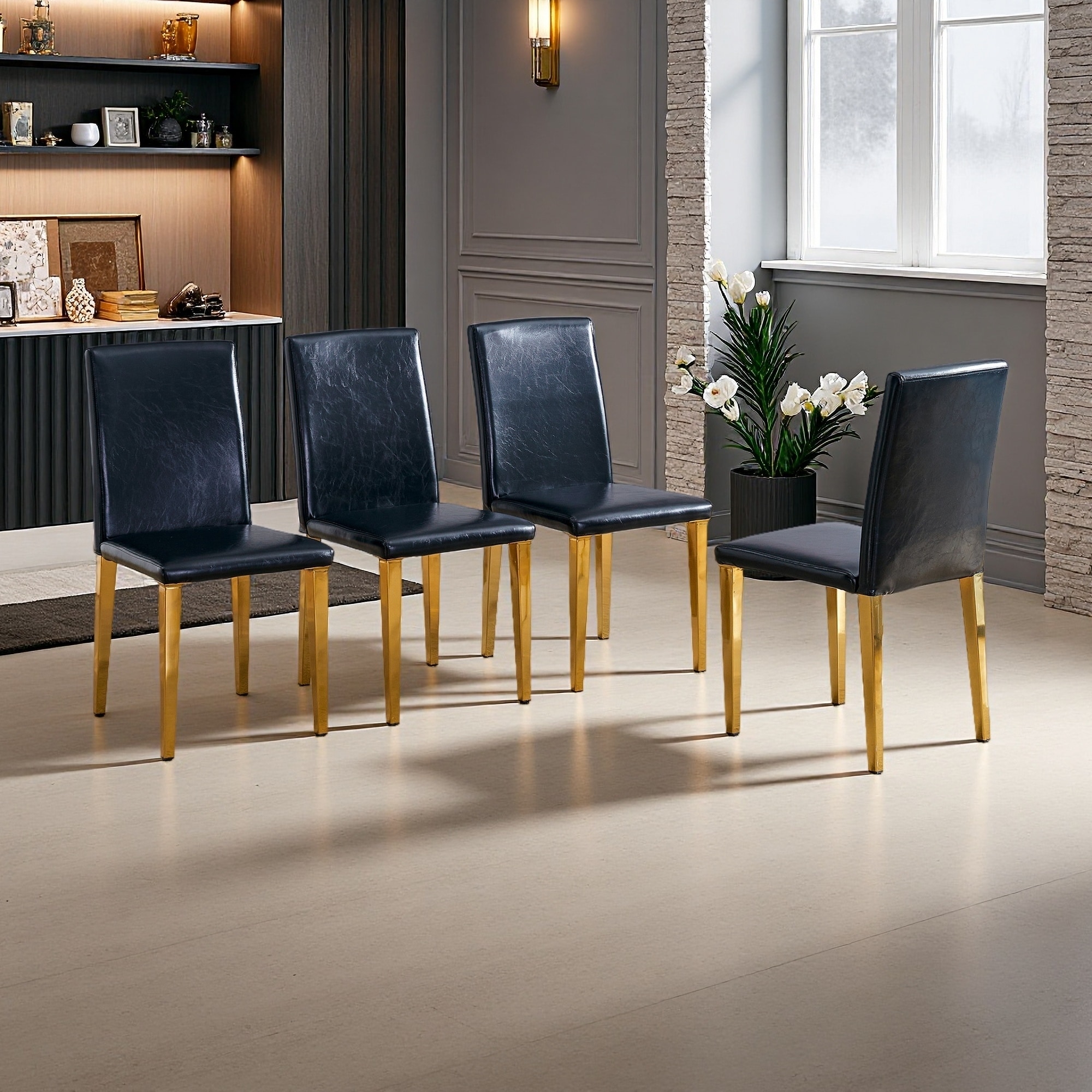 35"H Set of 4 PU Leather Dining Chairs with High Back & Metal Legs