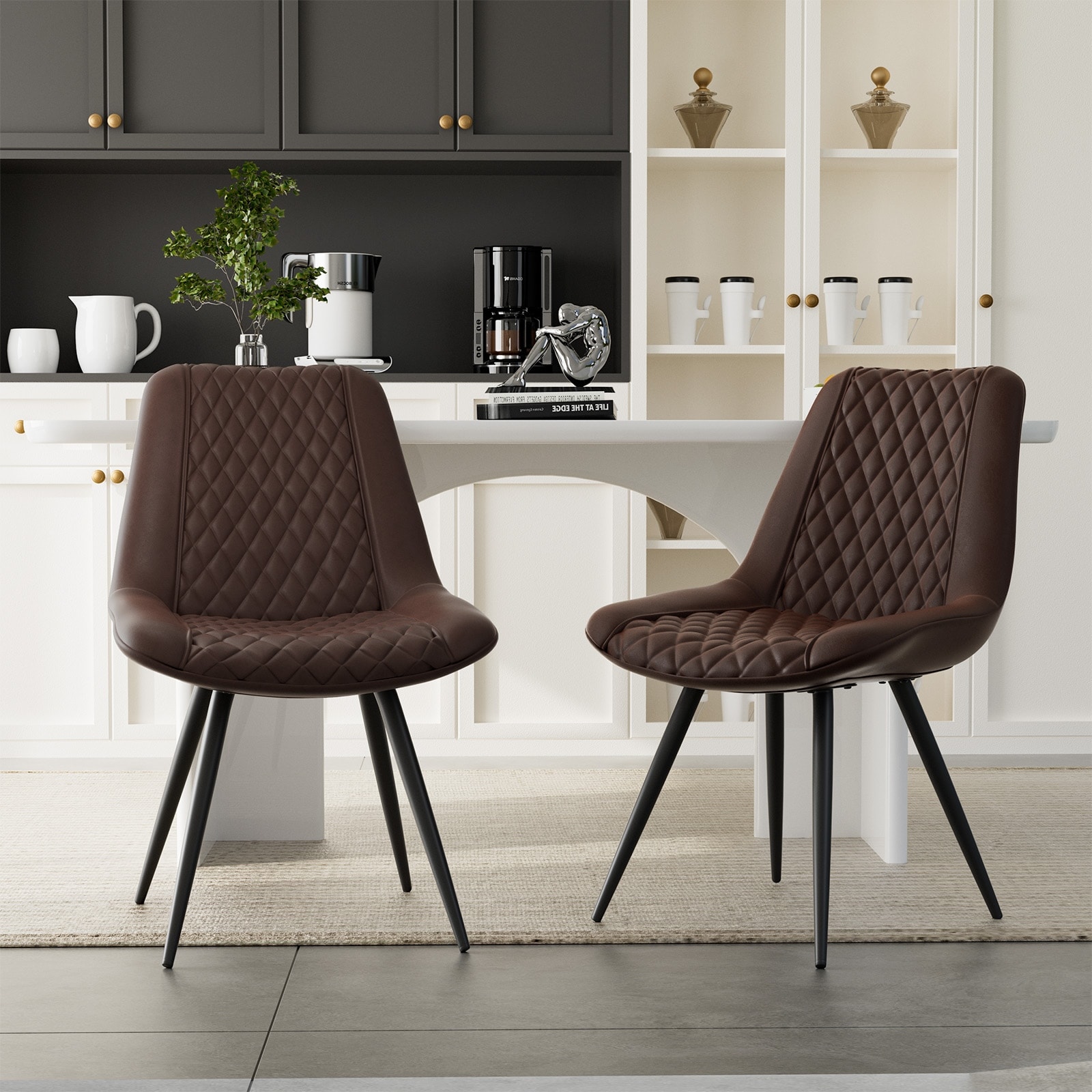 Modern Dining Chairs Set of 2, Top PU Leather Upholstered Dining Room Chairs with Metal Legs, Ergonomic Kitchen Chairs
