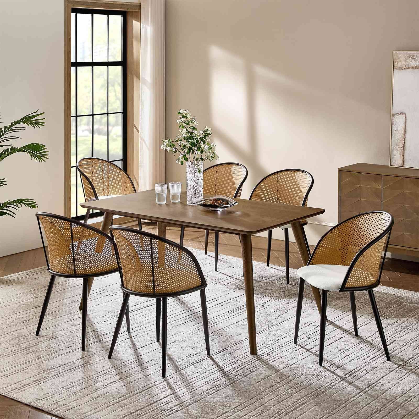 Rattan Dining Chair Without Arm(dark brown+beige) Set of 2