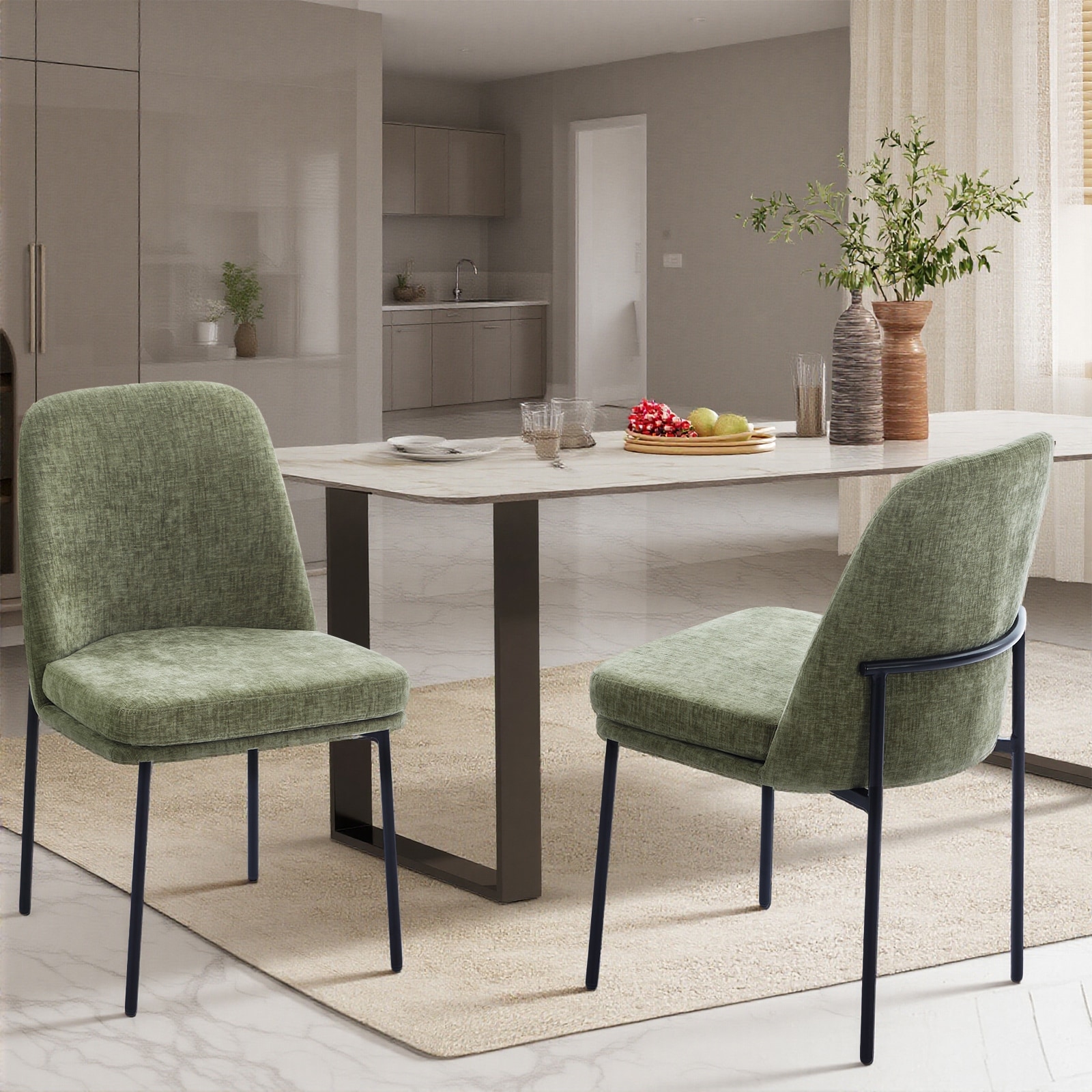 RENEWLINE Set of 2 Modern Dining Chairs with Curved Back & Metal Legs, Fabric or Leather Upholstered