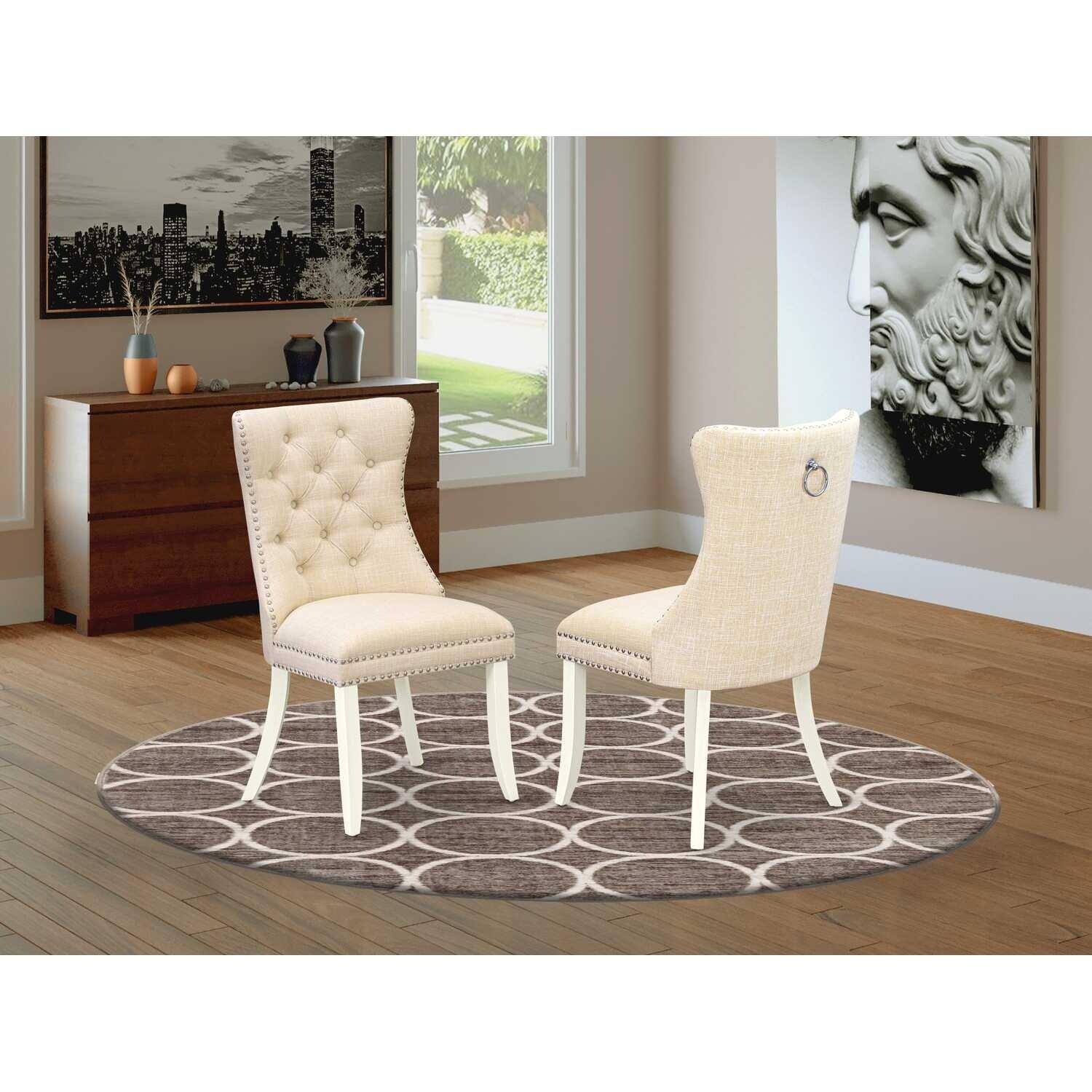 Modern Parson Dining Chairs - Light Beige Linen Fabric, Set of 2, Padded Comfort