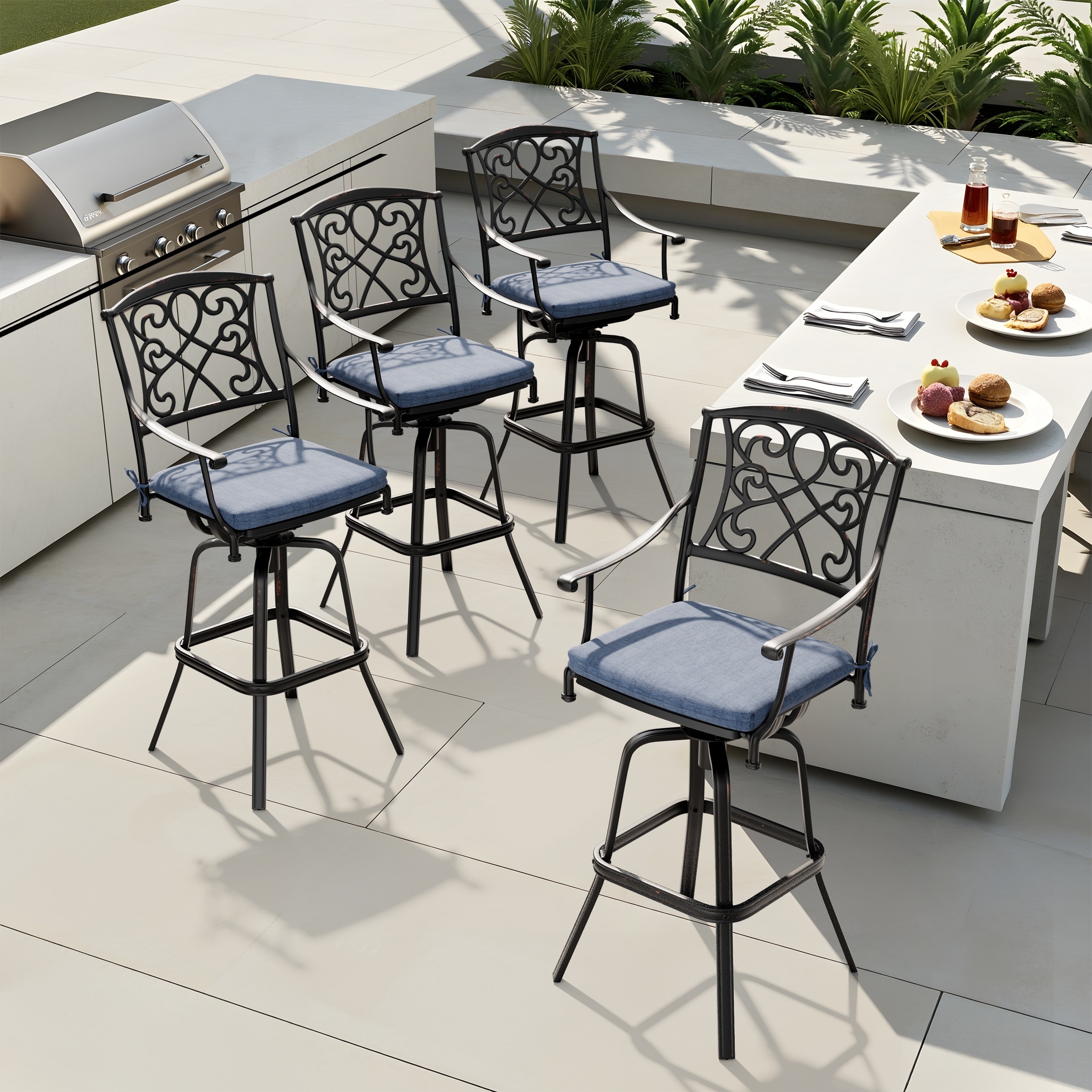 Pellebant Patio Aluminum Swivel Bar Stool with Sunbrella Cushion
