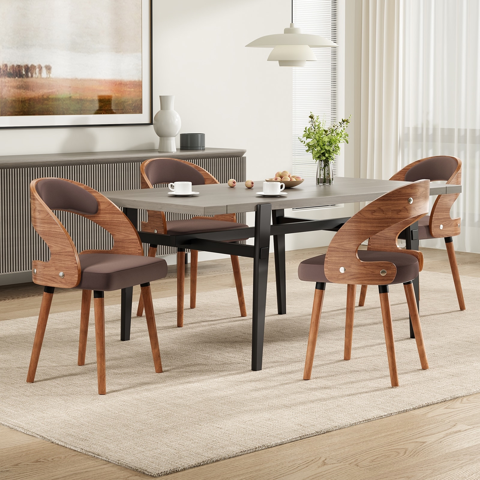 Set of 4 Modern PU Leather Dining Chairs with Thick Cushions & Metal Legs(Only Dining Chairs)