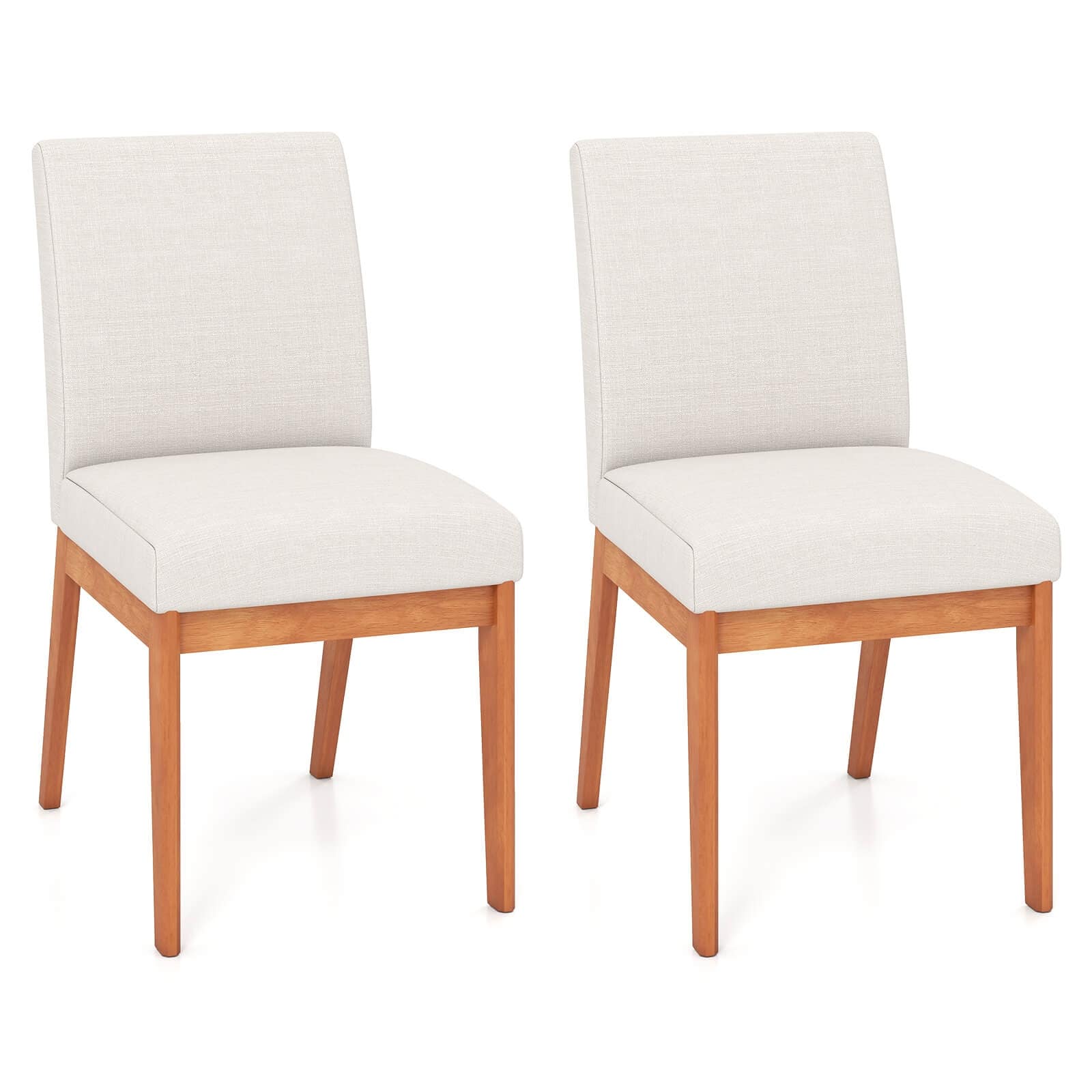 Set of 2 Linen Fabric Modern Armless Dining Chairs With Curved backrest and Solid Wooden Legs