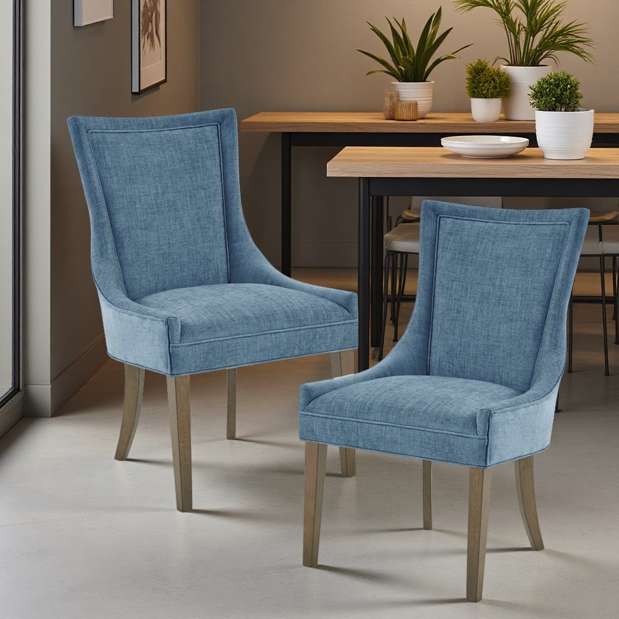 Modern 2 Piece Wooden Dining Chairs with Linen Cushions, Solid Wood Legs for Dining Room Kitchen Bedroom Living Room