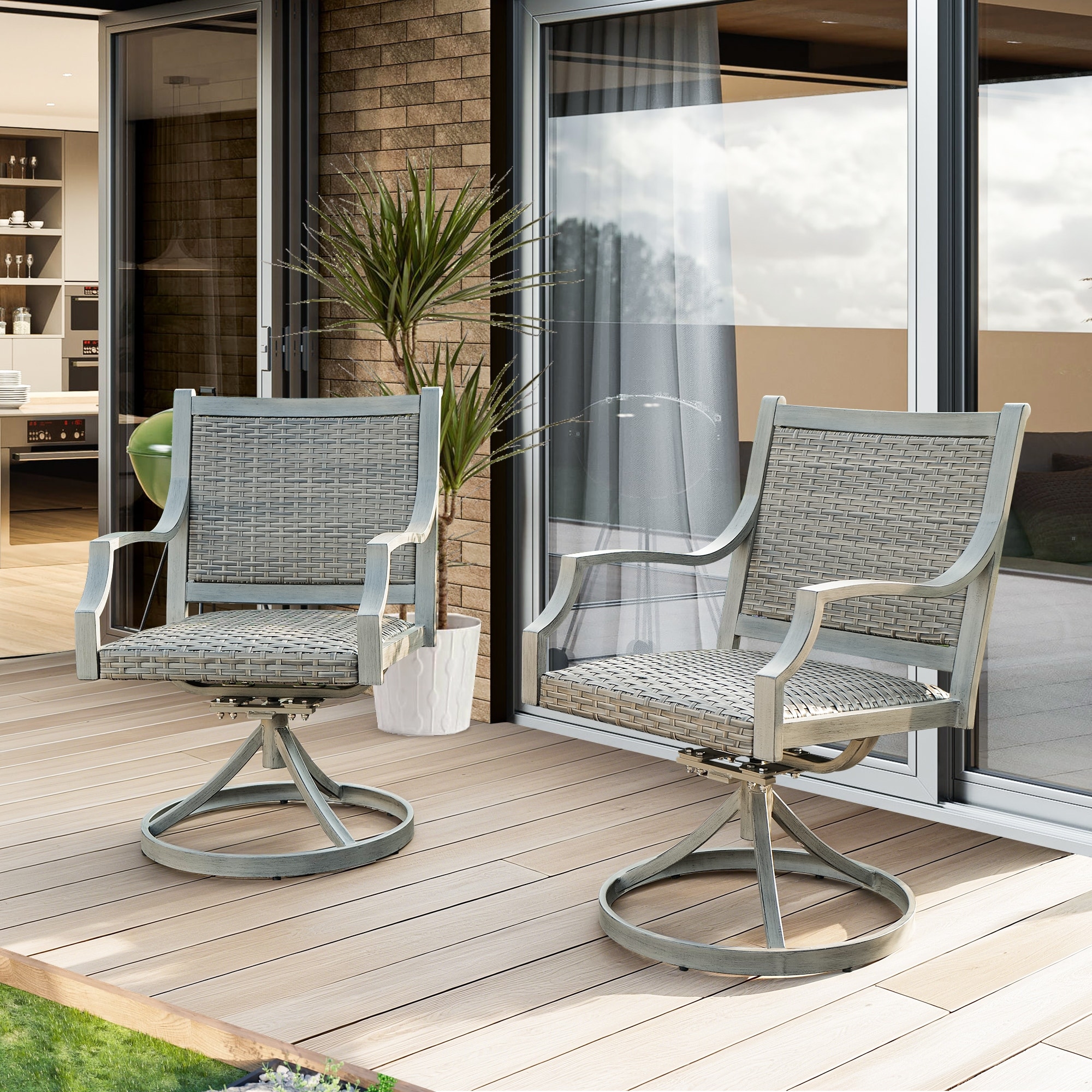 All-Weather Wicker Patio Chairs, Padded Outdoor Dining Set, Rattan Design