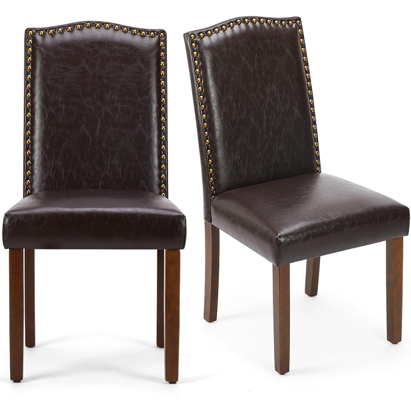 Upholstered Dining Chairs Set of 2, Modern Leather Dining Room Chair with Nailhead Trim and Wood Legs, Mid-Century Accent