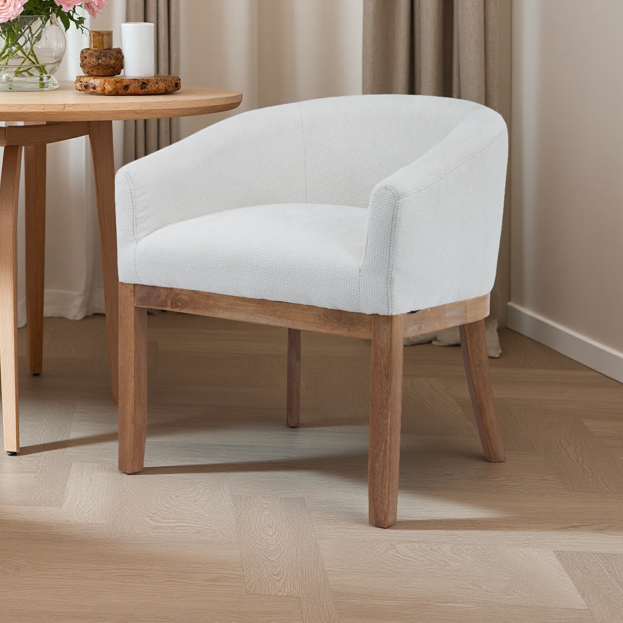 27.9"H Upholstered Barrel Dining Chair with Arms - Farmhouse Linen Accent Chair with Curved Legs and Natural Rubberwood Frame