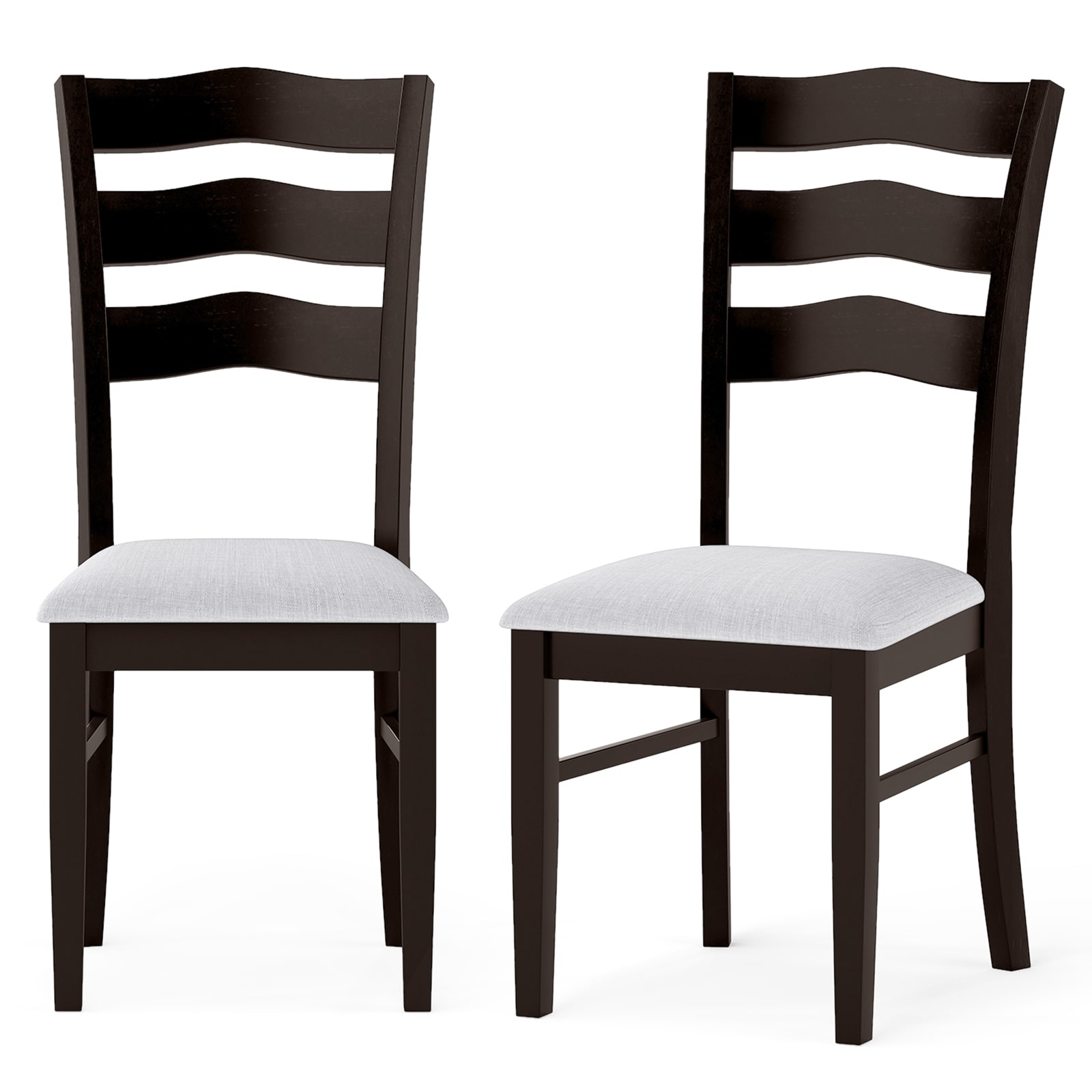 Gymax Dining Chairs Set of 2 Fabric Rubber Wood Legs Padded Seat Wavy
