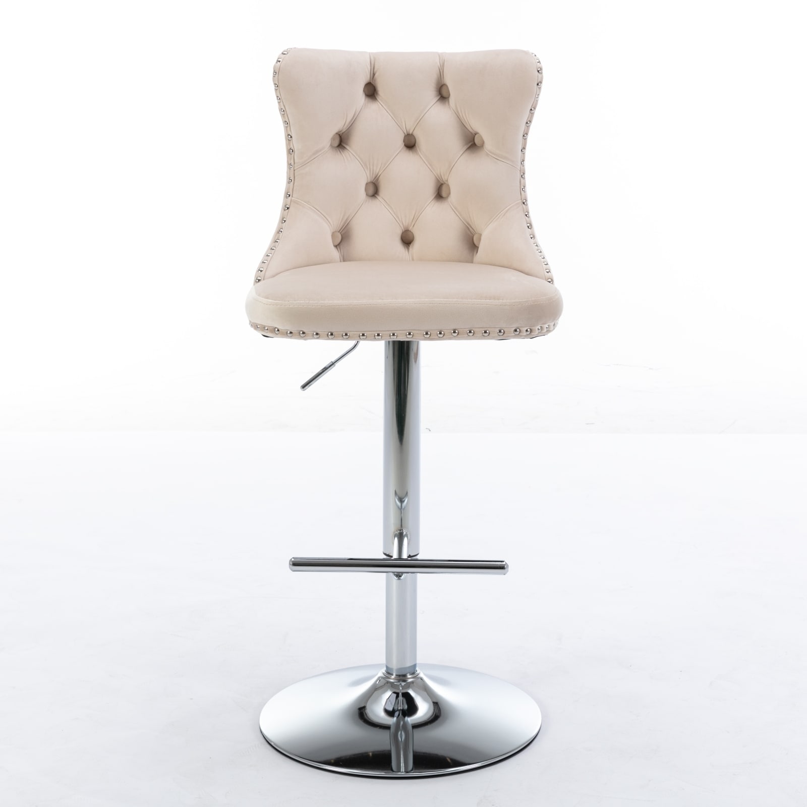26" Counter Height Bar Stools Set of 2, Modern Velvet Barstools with Button Back&Rivet Trim Upholstered Kitchen Island Chairs w