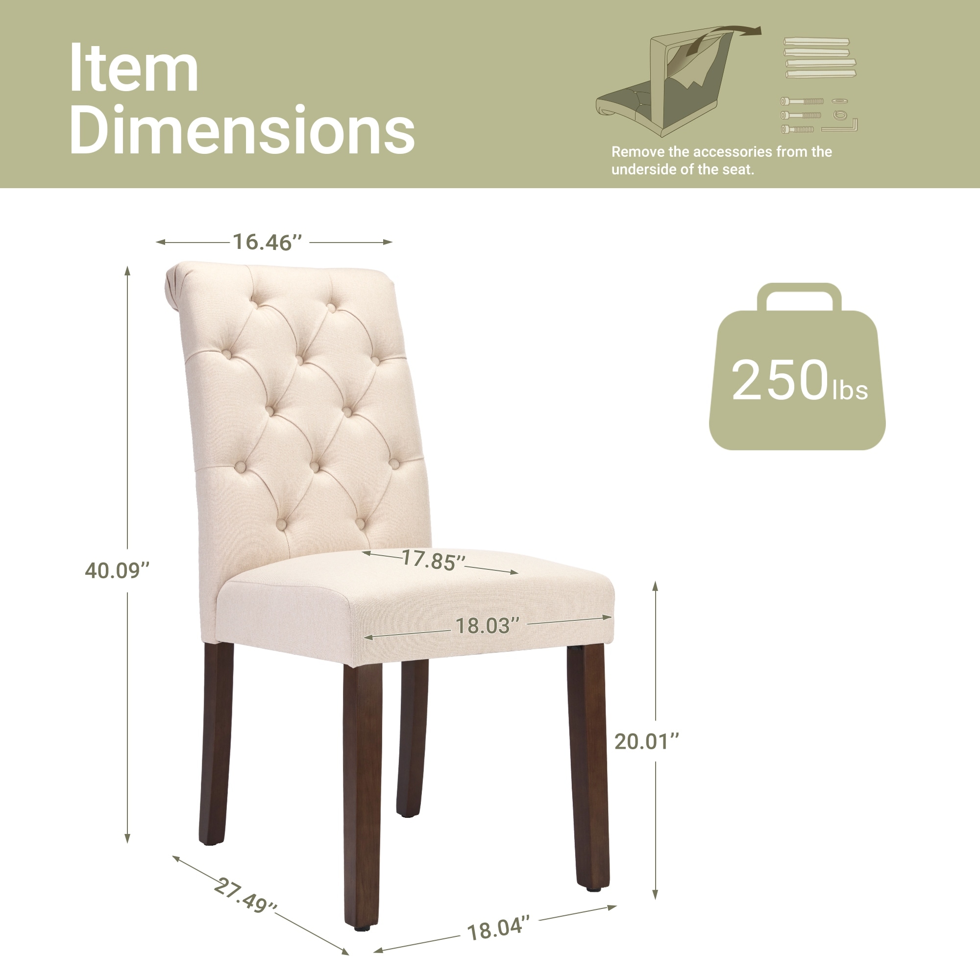 Modern Tufted Fabric Dining Chairs – Stylish Parsons Side Chairs with Padded Seat & Wood Legs,Set of 2/4/6