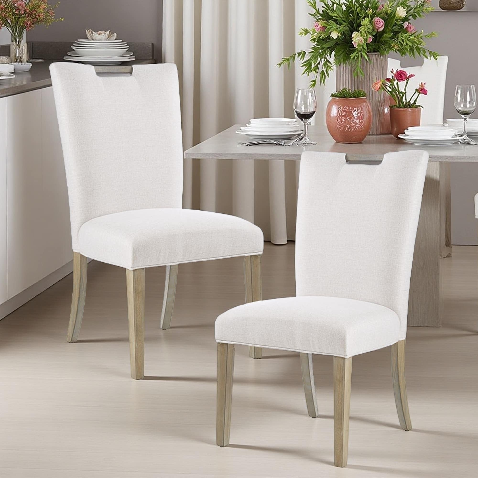 38.75"H Set of 2 Upholstered Dining Chairs with 5" Thick Cushion, Rubber Wood Legs, and Reclaimed Smooth Finish
