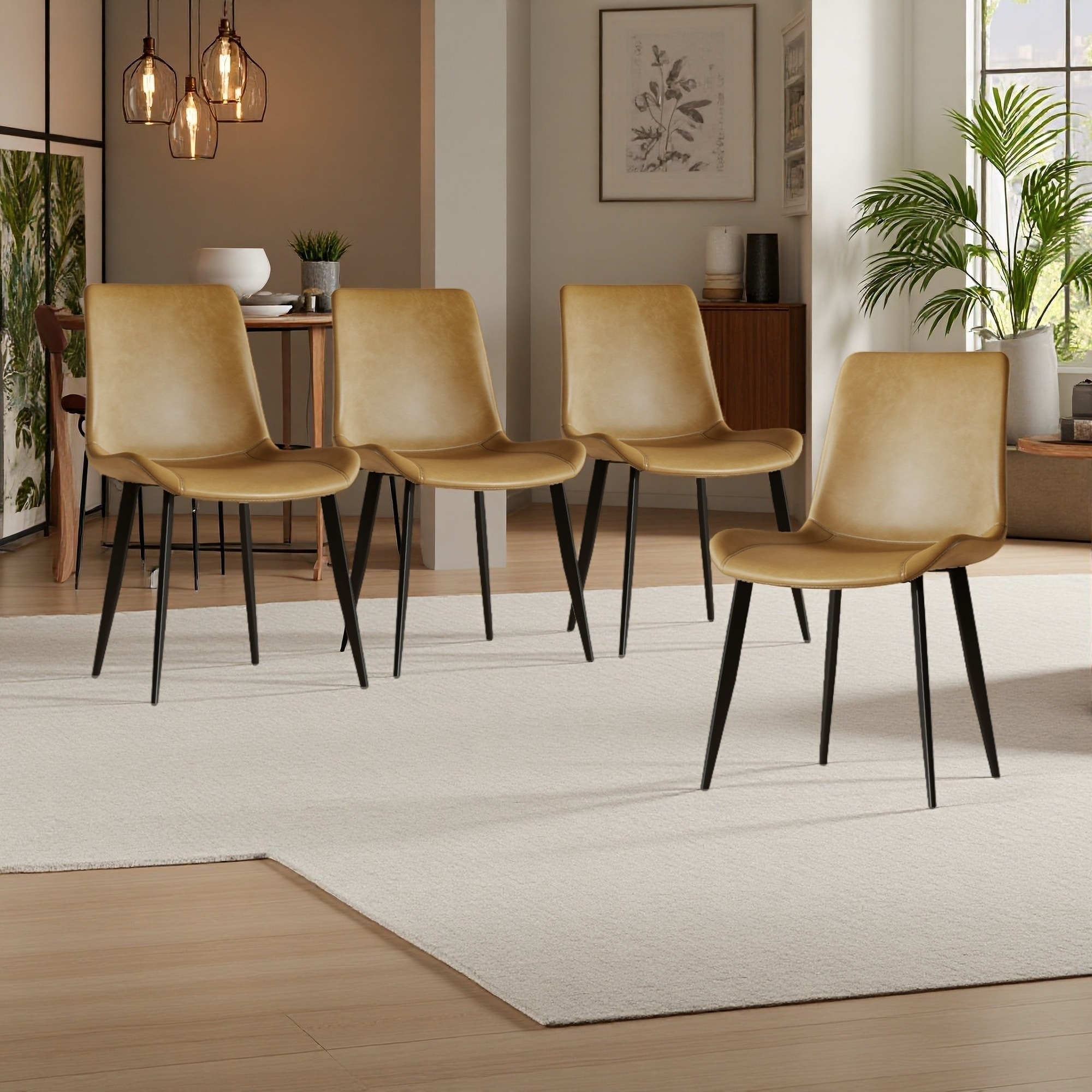 33"H Set of 4 Standard Size PU Leather Dining Chairs with Carbon Steel Legs Ergonomic Backrest, Cushioned Seat, Water-Resistant