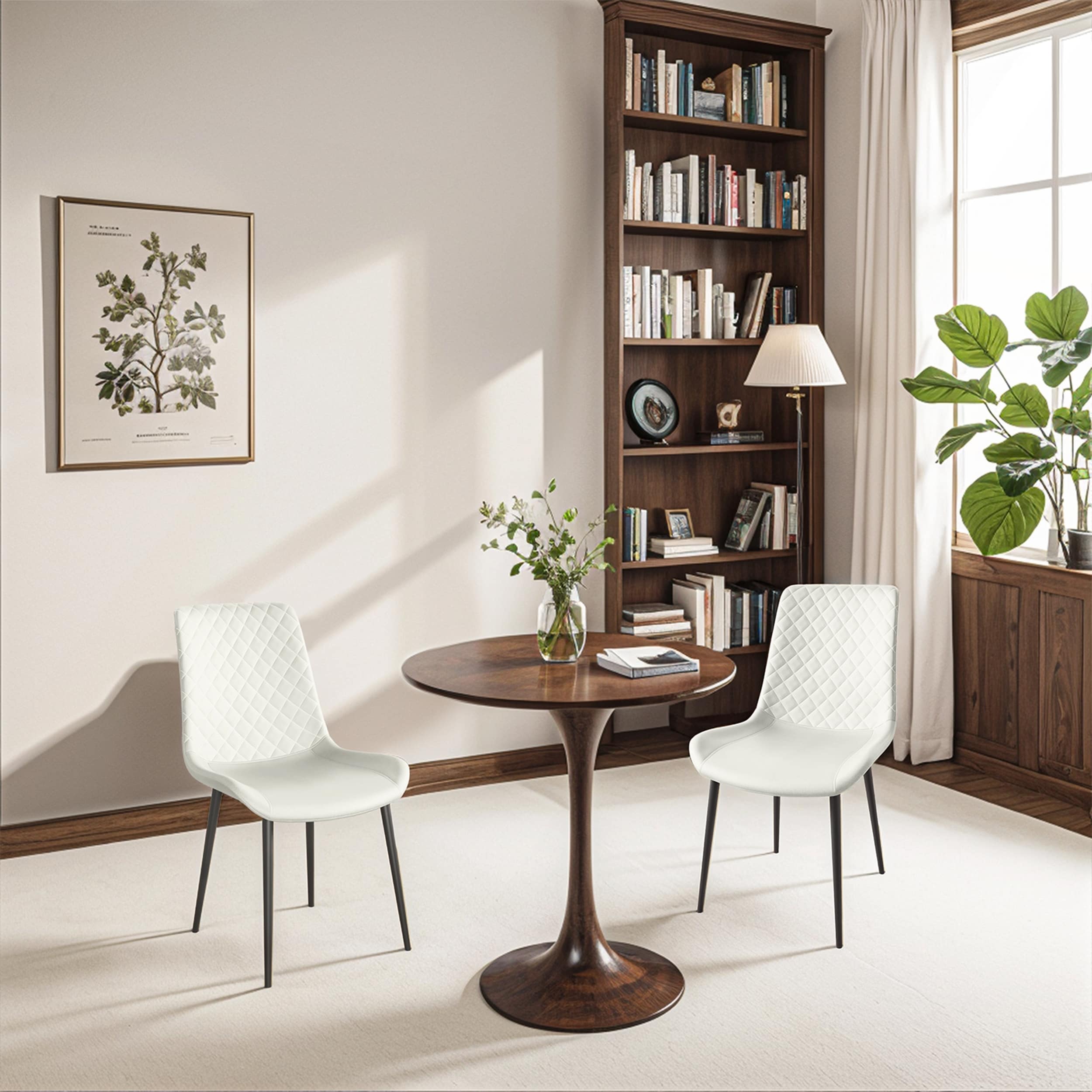 White PU Leather Dining Chair Set with Metal Legs for Various Living Spaces