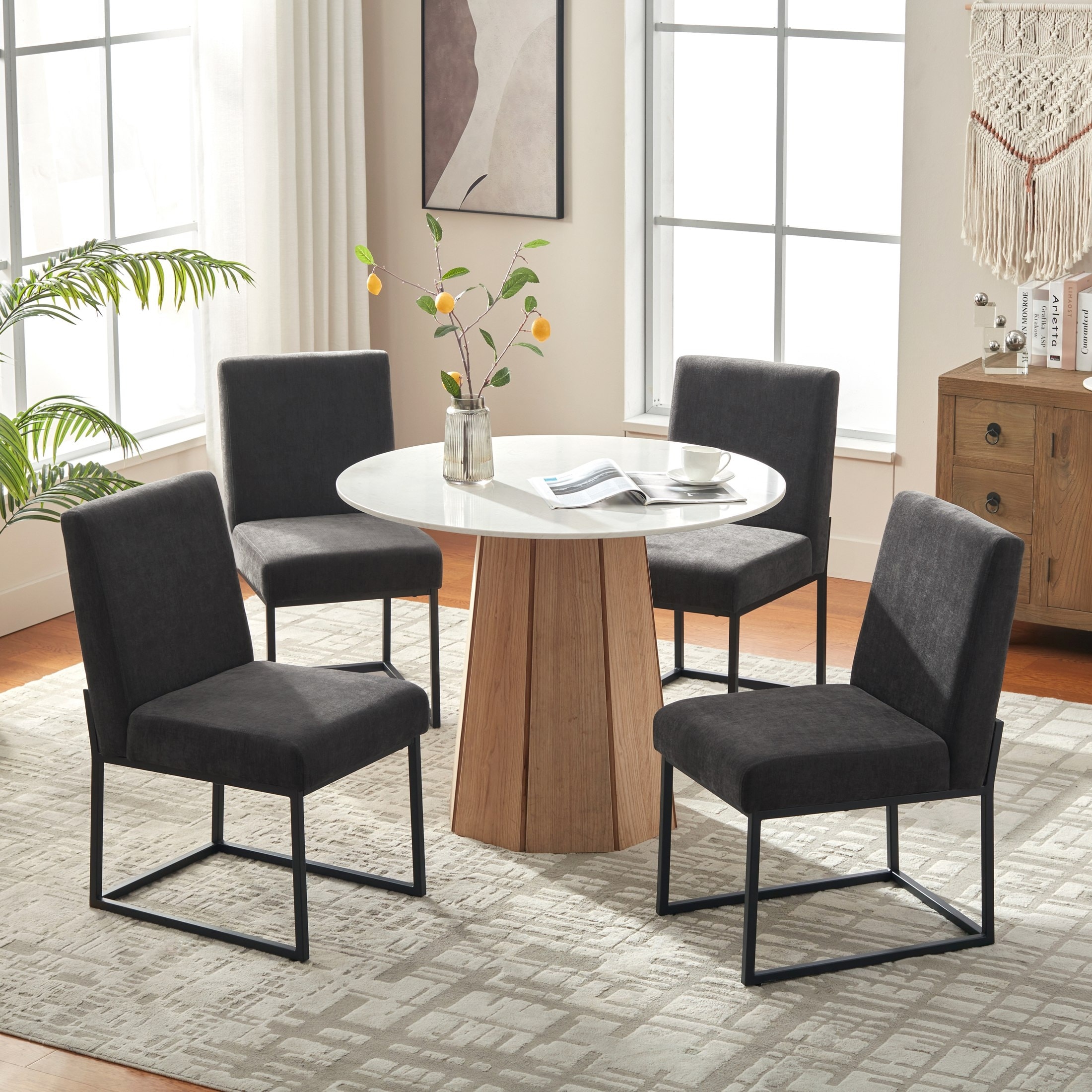 SEYNAR Modern Dining Chairs Set of 6, Velvet Accent Chair Tufted Back Armless Chair with Back Pull