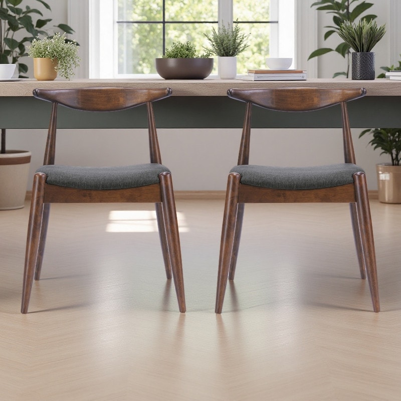 29"H Set of 2 Upholstered Mid-Century Dining Chairs with Rubberwood Frame