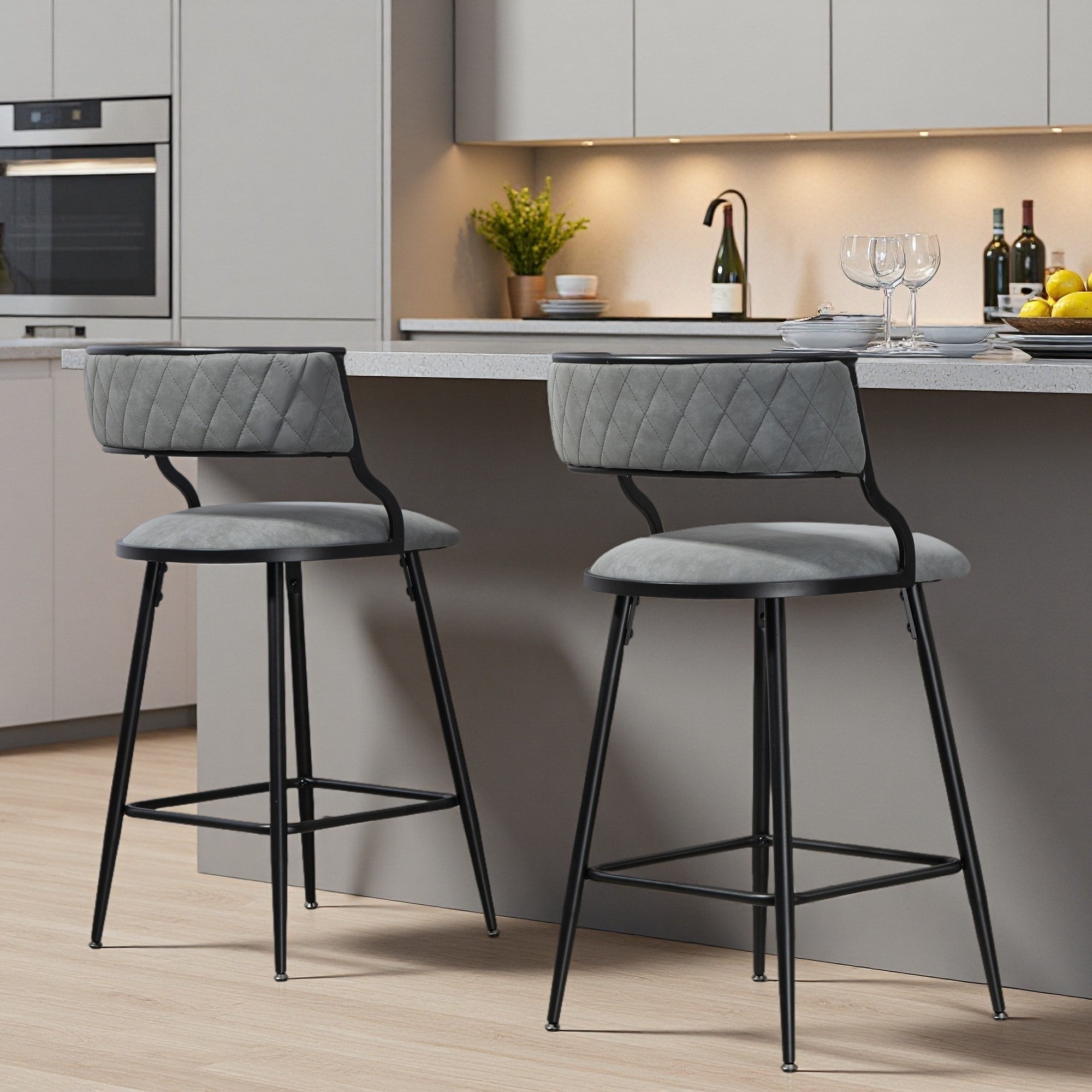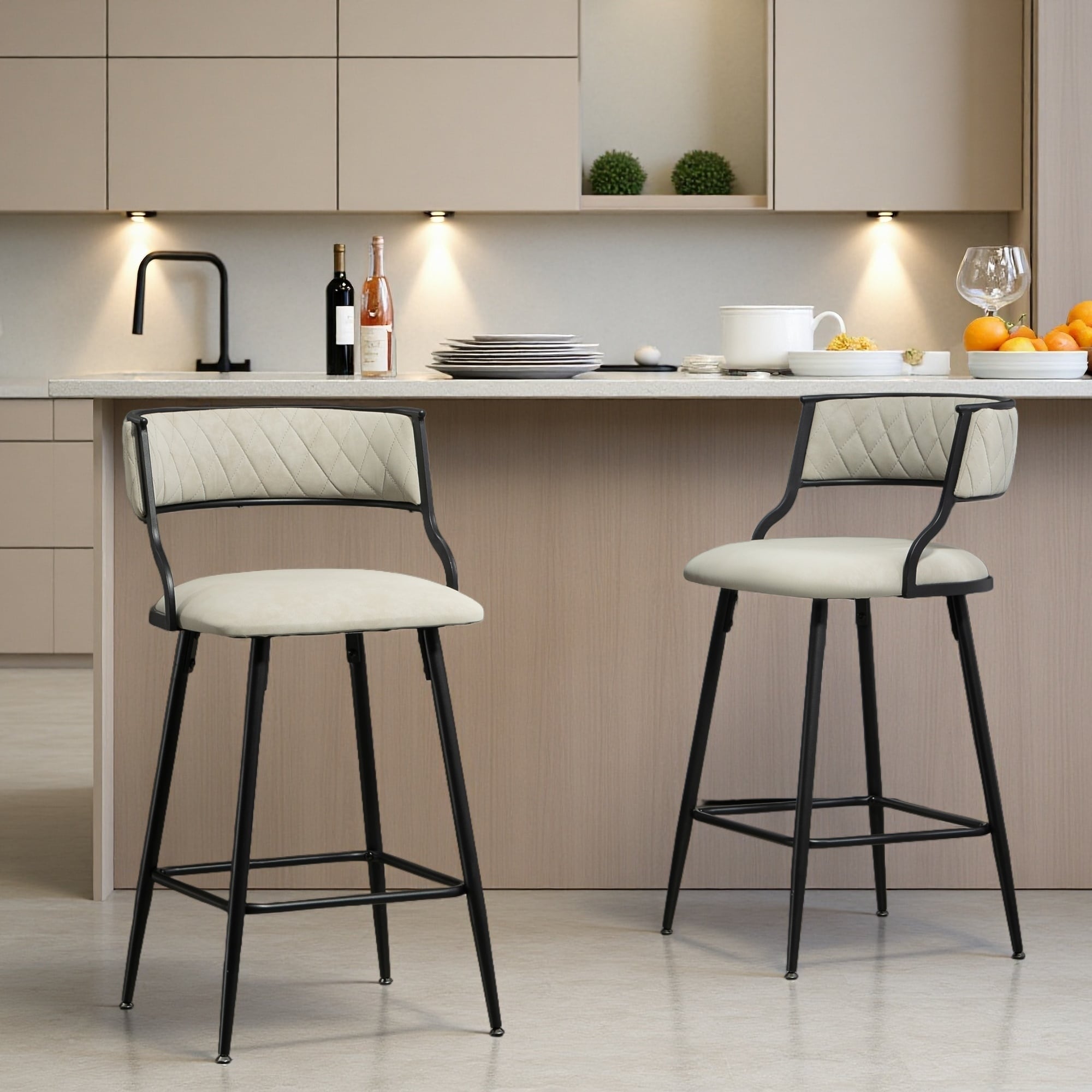 35"H Set of 2 26'' PU Upholstered Counter Height Bar Stools Modern Bar Chairs with Powder-Coated Base & Footrest for Cafe