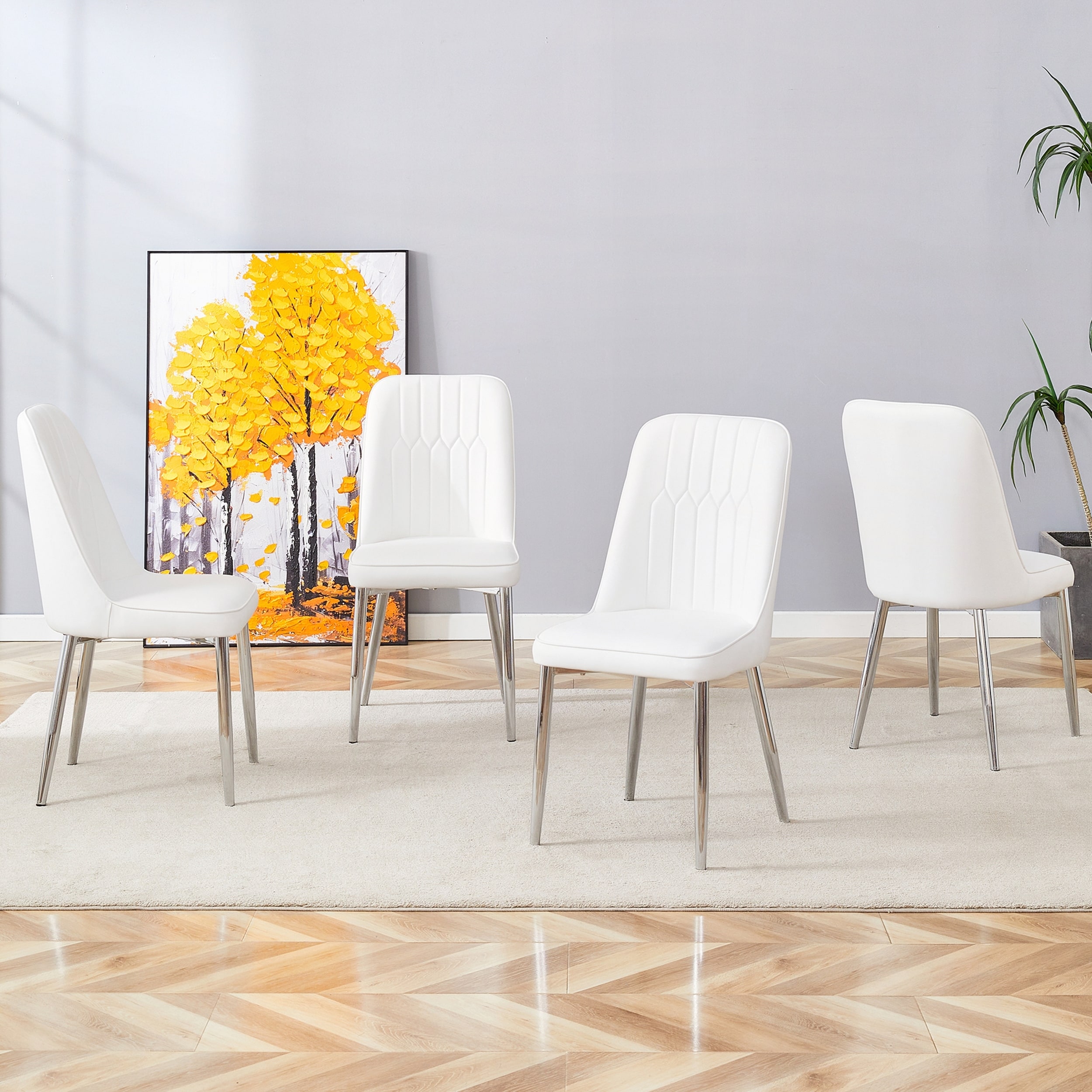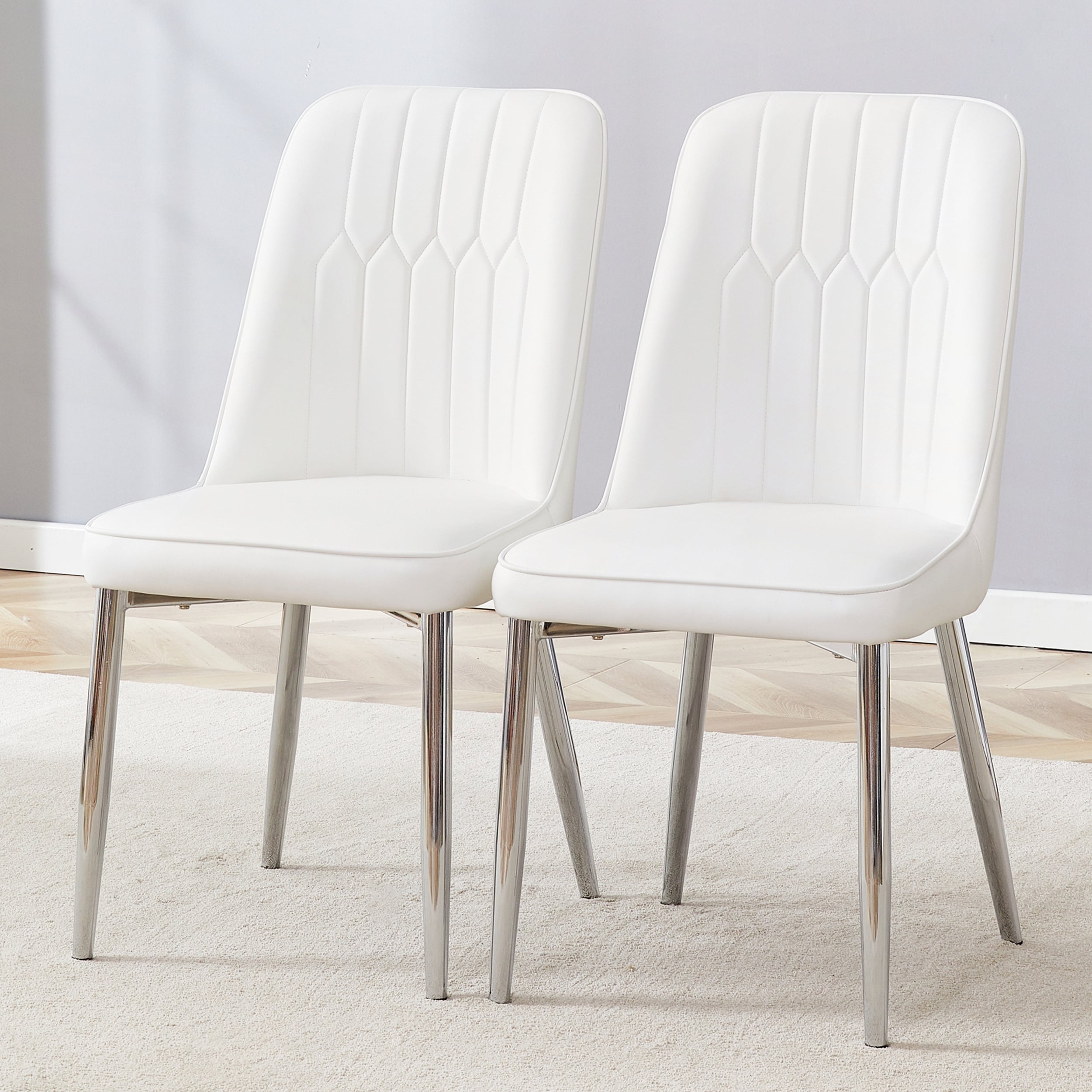 Modern Dining Chairs with Sleek PU Leather Backrest and Sturdy Silver Metal Legs for Kitchen, Bedroom, and Office