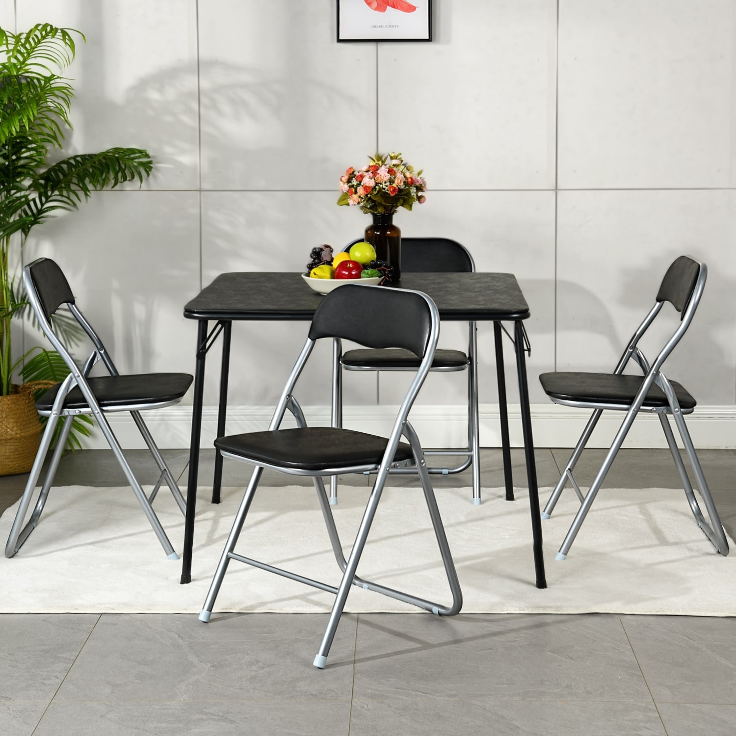 Homy Casa Set Black Folding Dining Chairs, Metal Frame PVC Seat
