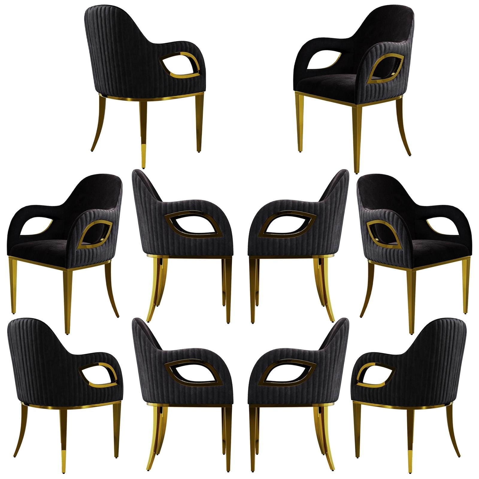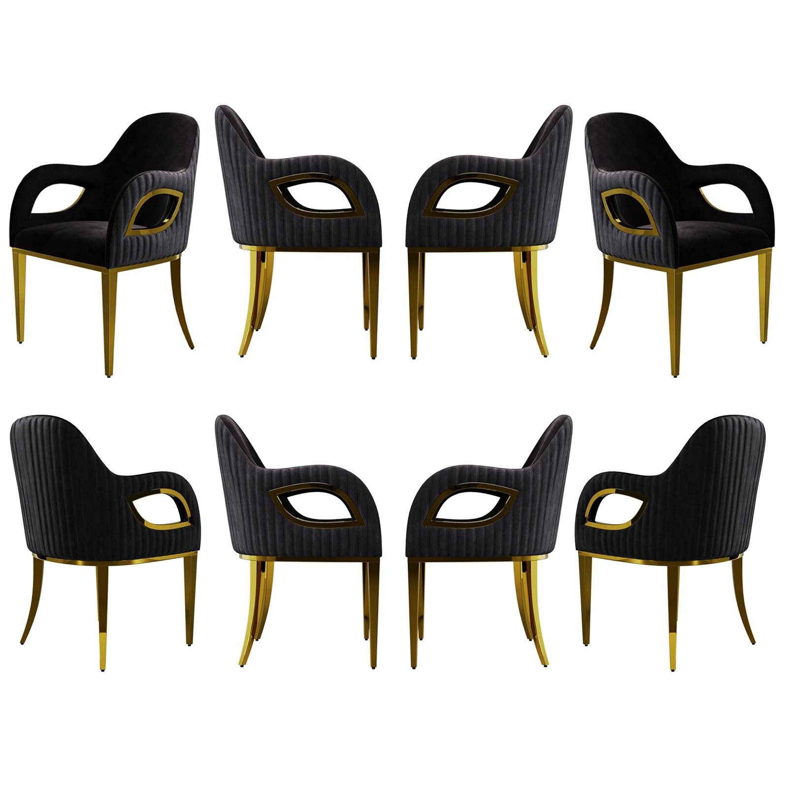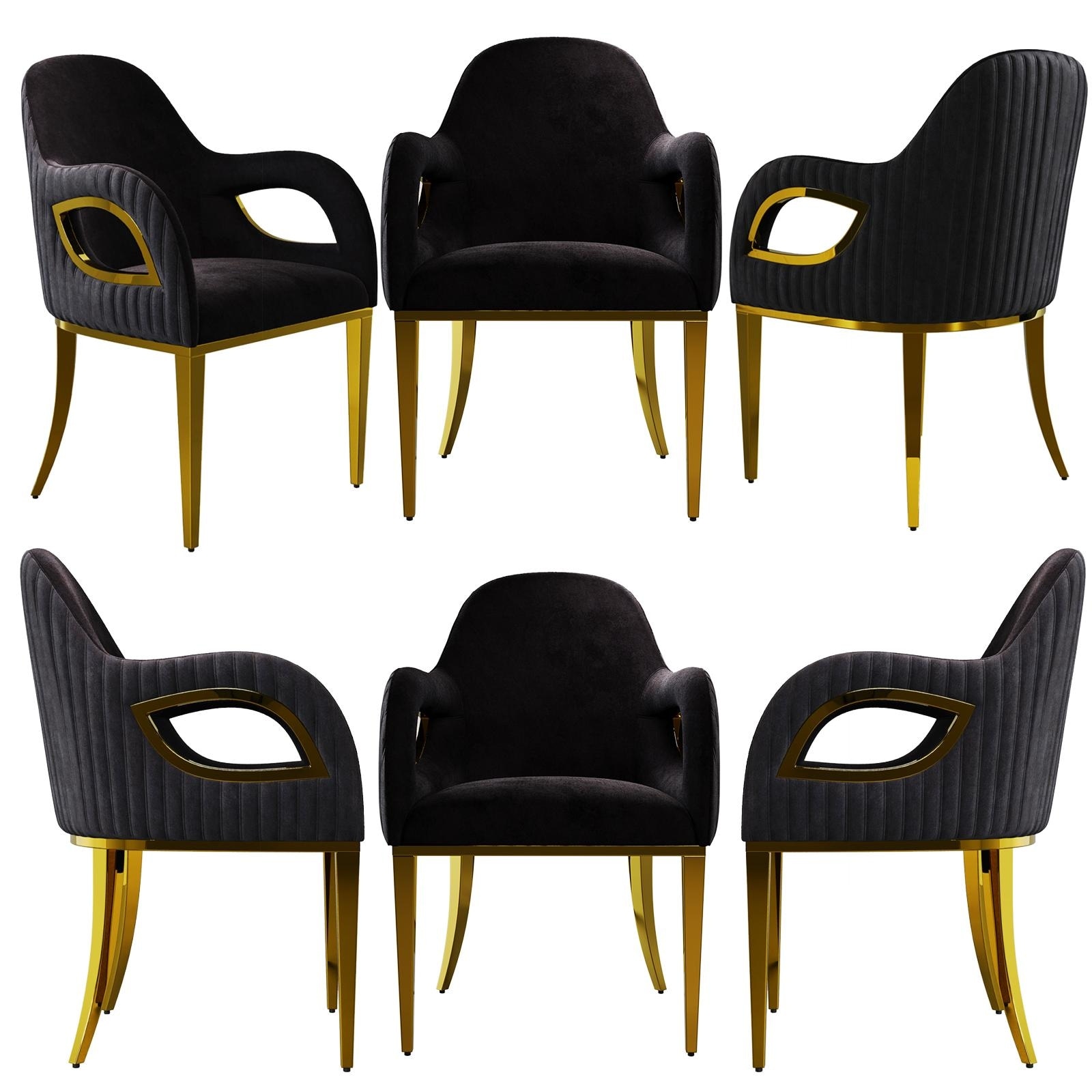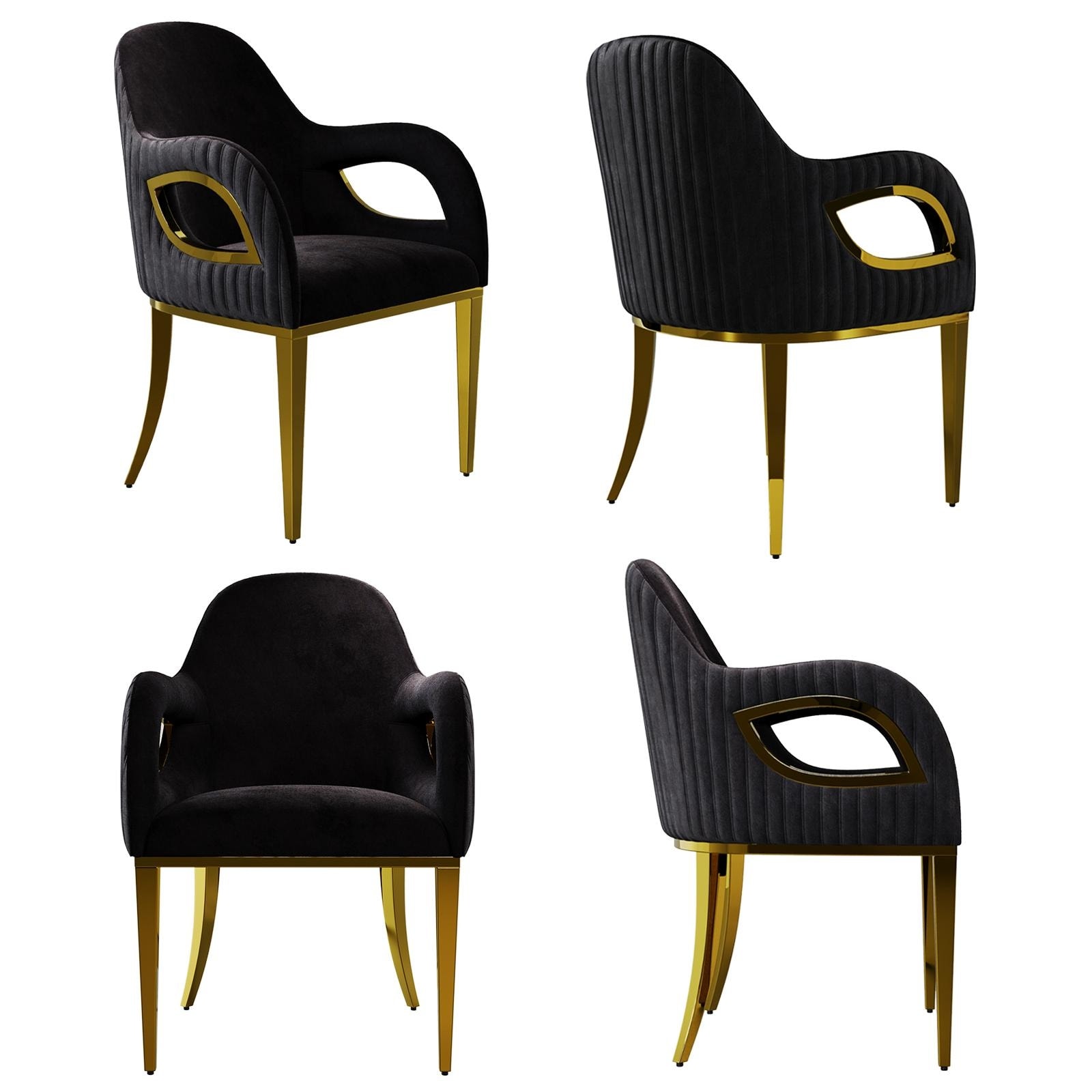 Luxury Black Velvet Accent Armchair with Fox-Eyes Arms