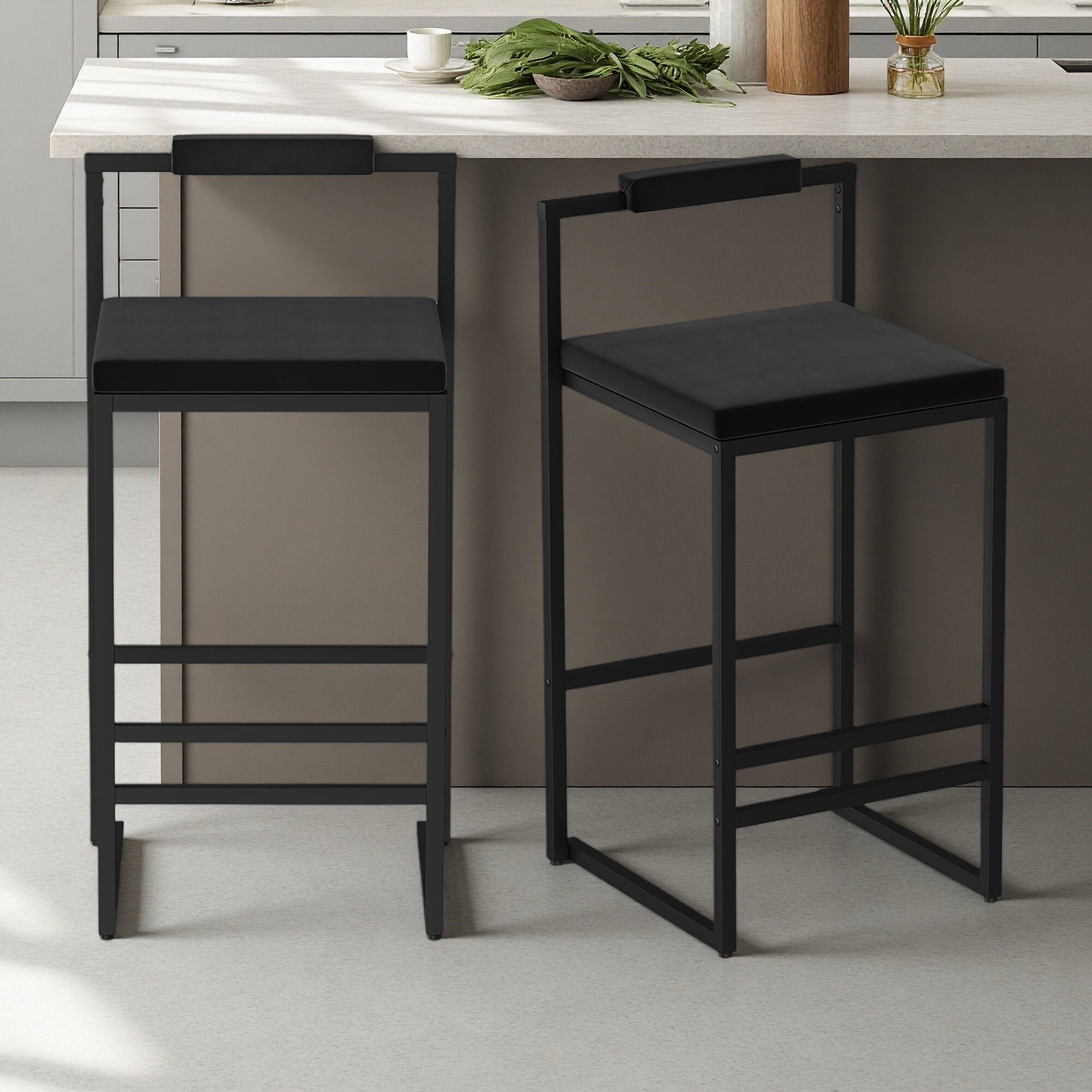 31.69"H Set of 2 Modern Velvet Upholstered Bar Stools - Counter Height Dining Chairs with Footrest & Back Support for Kitchen
